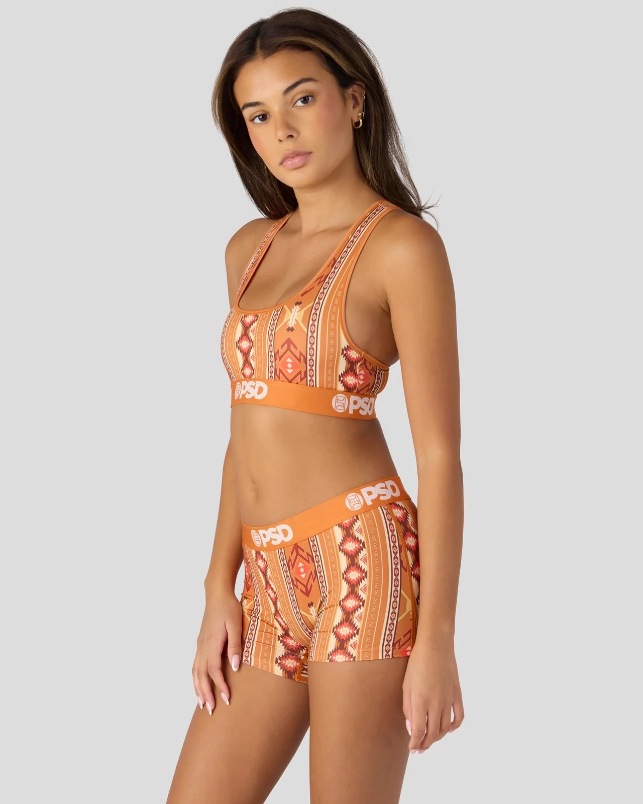 The Aztec Dust Sports Bra is made from a silky poly blend and is breathable yet slightly compressive, bringing you the comfort and support you need for everything you get into.