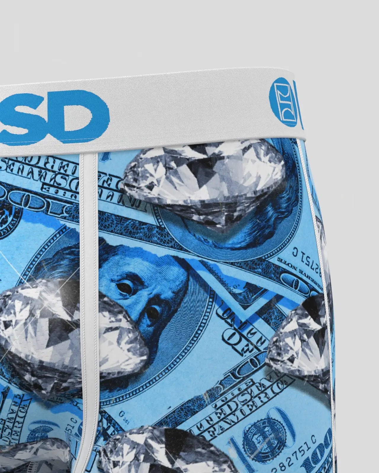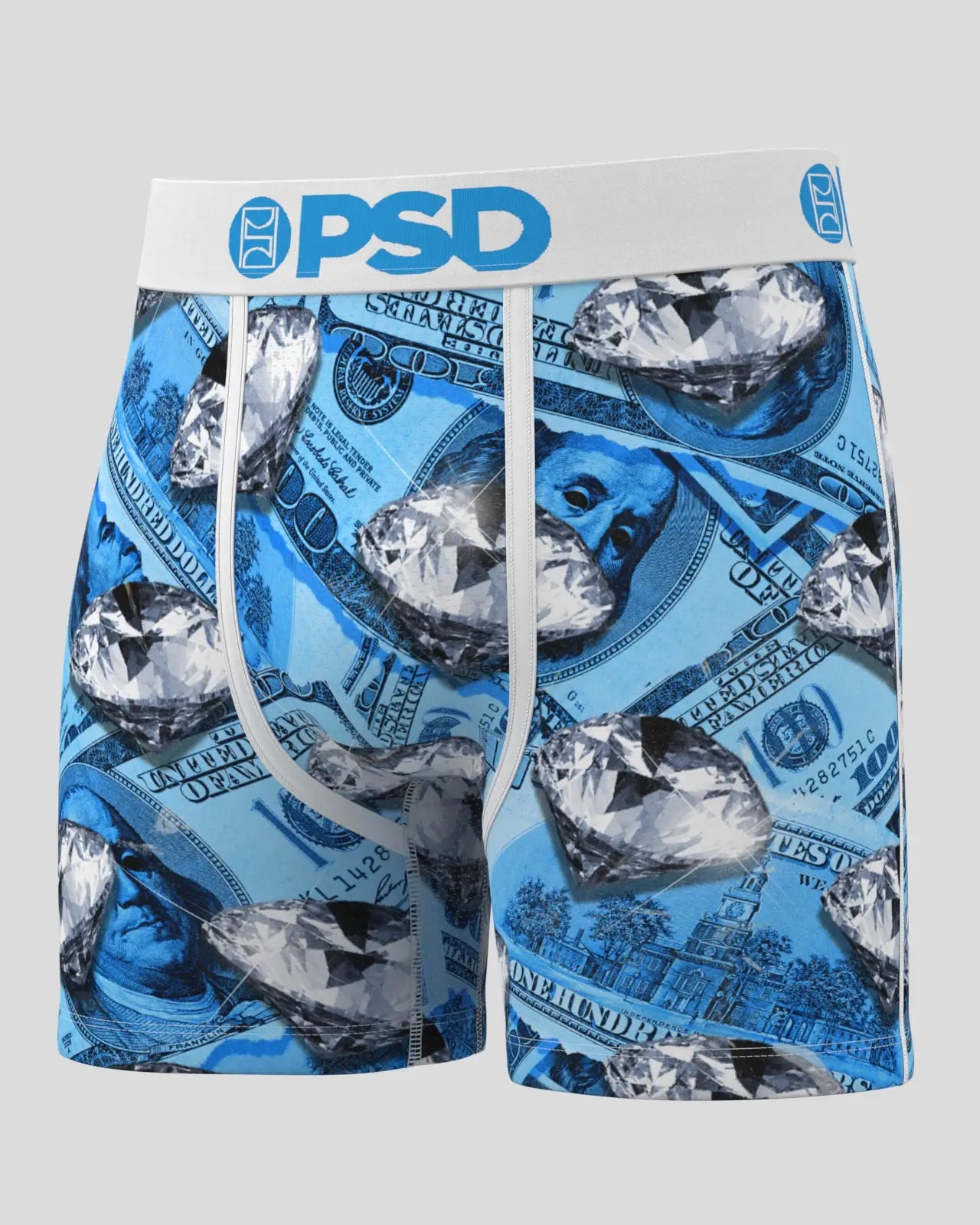 Don't fumble the bag—cash in with this new pair. The Blue Fortune briefs include our ultra-comfortable Signature WaistBand, a breathable MicroMesh pouch, and four-way stretch. The PSD 5” Mid Length Briefs won't roll or ride and were built for everything, from everyday wear to your toughest workouts.