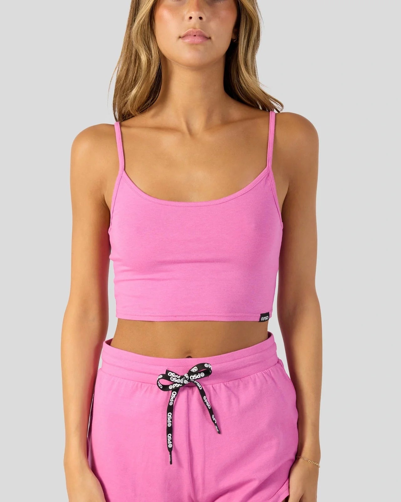 Your downtime just got a whole lot more comfortable. Made of our super soft premium Modal, the Blush Pink Sleep Set includes a matching spaghetti strap cropped tank and dolphin hem shorts.