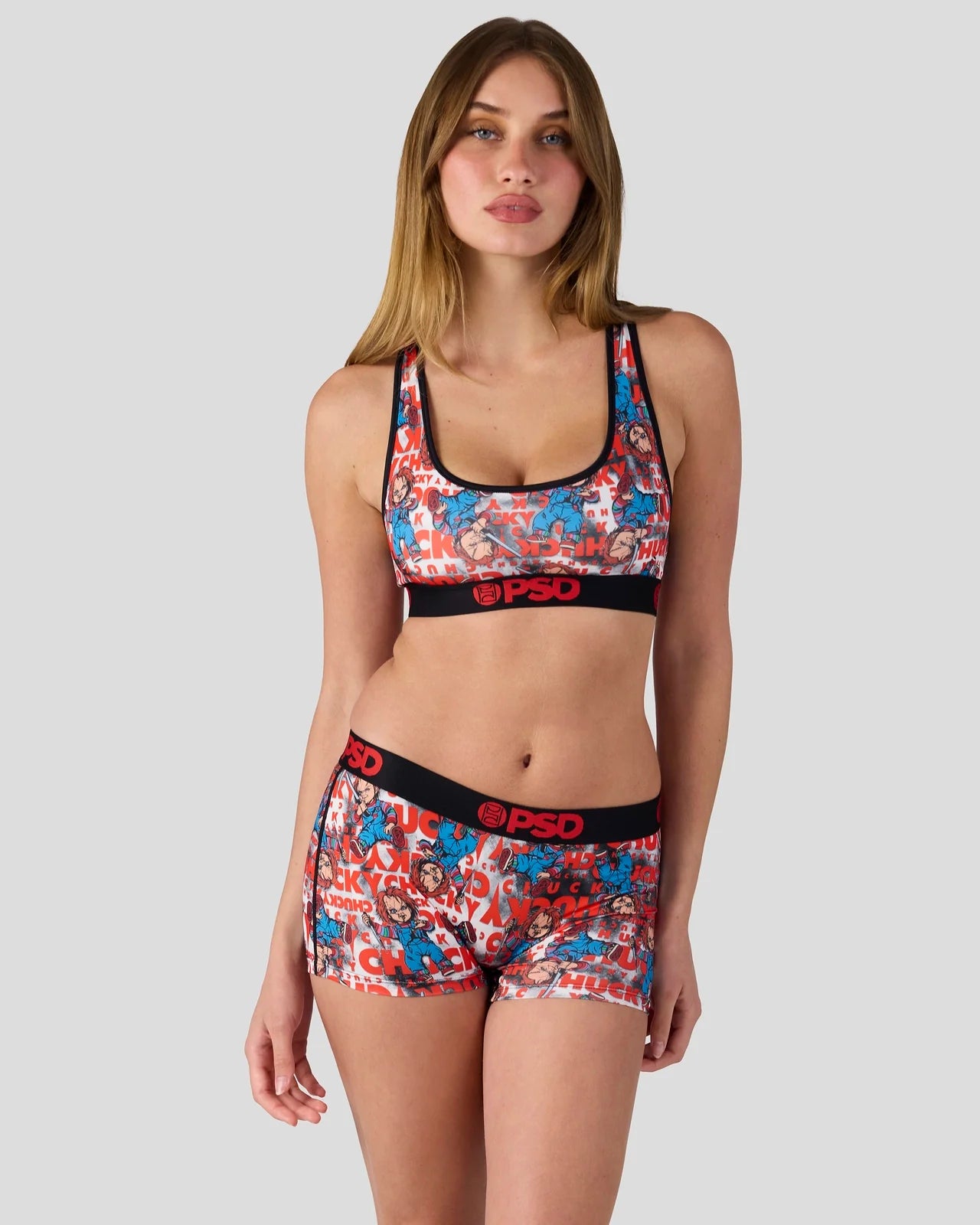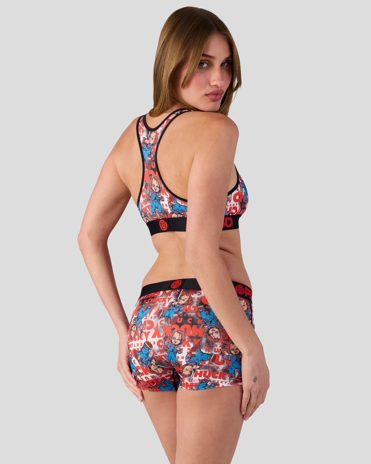 Straight from the toy box of nightmares, this Chucky x PSD look is ready to play. The Wanna Play Sports Bra is made from a silky poly blend that’s breathable yet slightly compressive, bringing you the comfort and support you need for everything you get into.