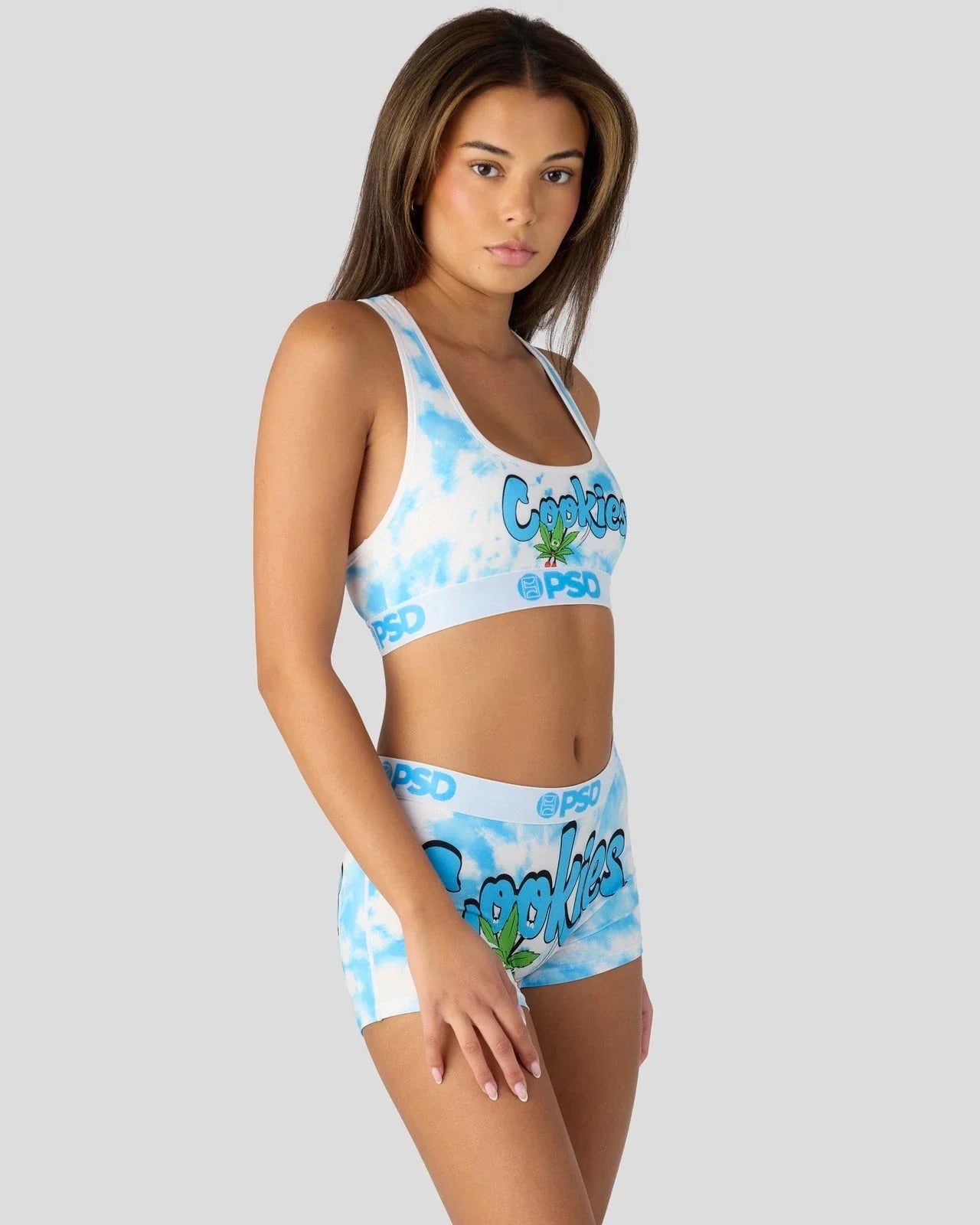 Feel elevated in this new drop from Cookies x PSD. Featuring a tie-dye print, the Happy Sports Bra is made from a silky poly blend and is breathable yet slightly compressive, bringing you the comfort and support you need for everything you get into.