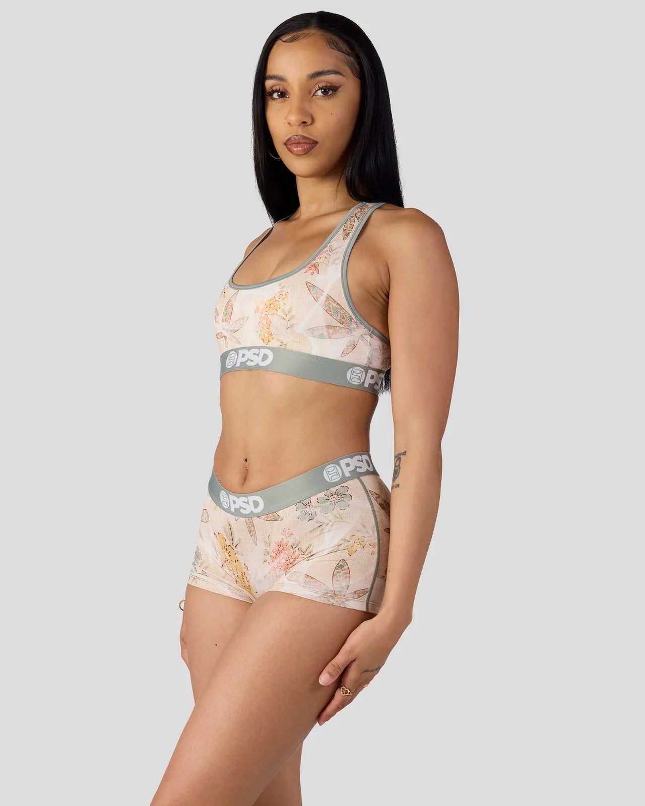 Inspired by a vintage tapestry with an elevated twist, the Dainty Smoke Boy Short is made from a silky poly blend with a comfortable full coverage, keep-you-in fit. The PSD boy shorts are perfect for everyday wear and working out.