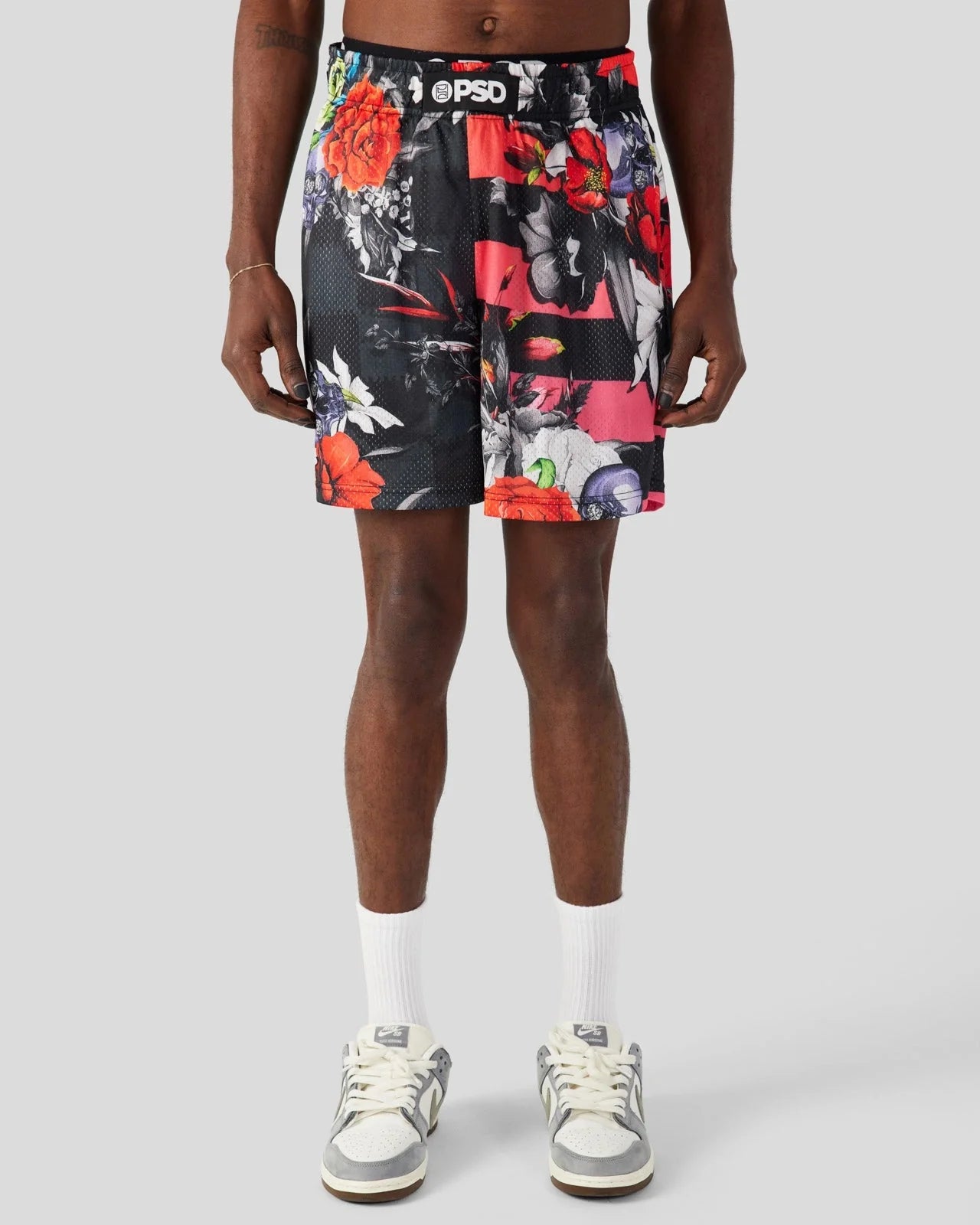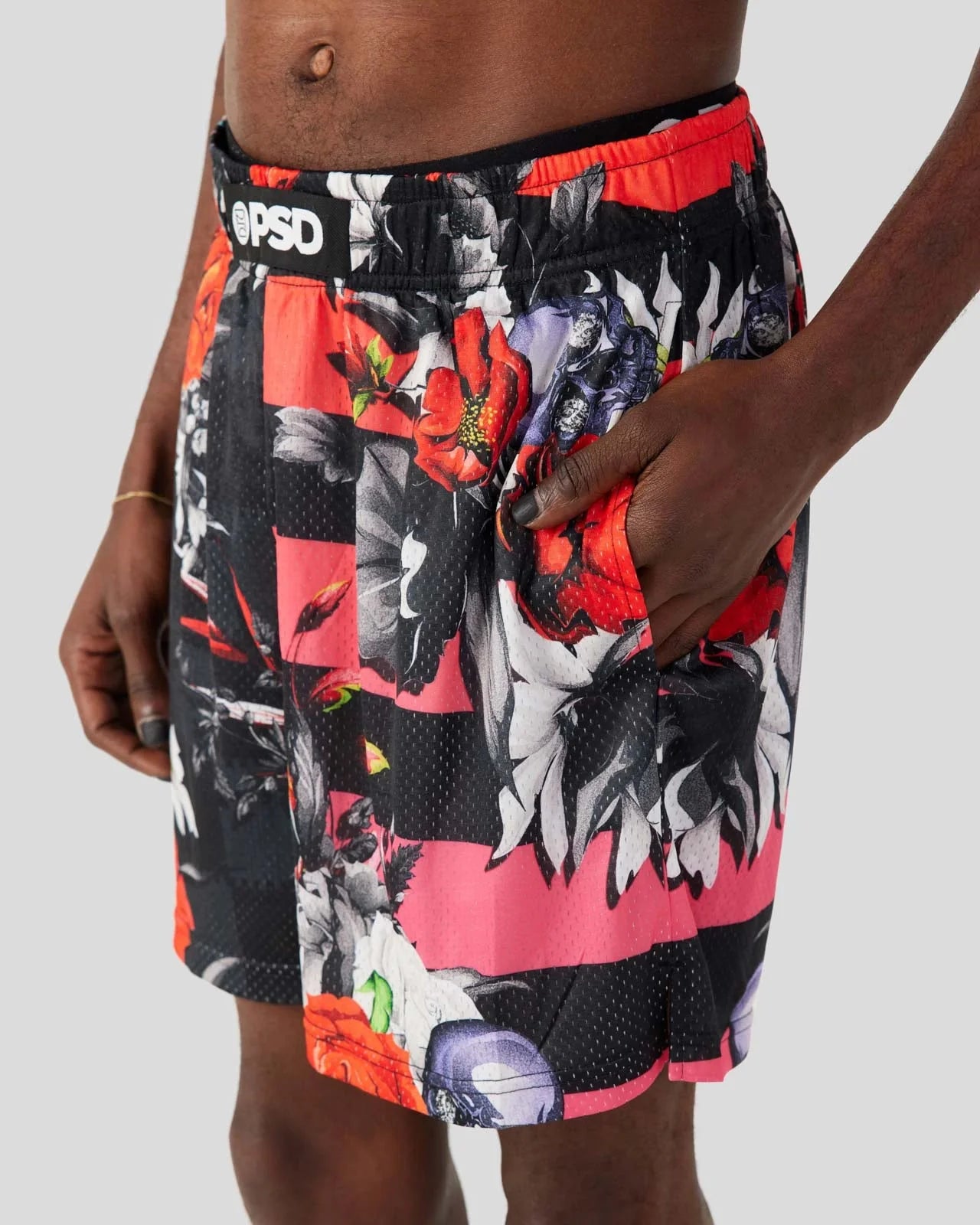 Floral print, but make it tough. The PSD Men’s Floral Demise Active Shorts feature an overlay of florals with stripes and checkers underneath. These shorts are made of lightweight and breathable mesh so you do your thing, whether you're lounging at home or trying to stay cool on the court.