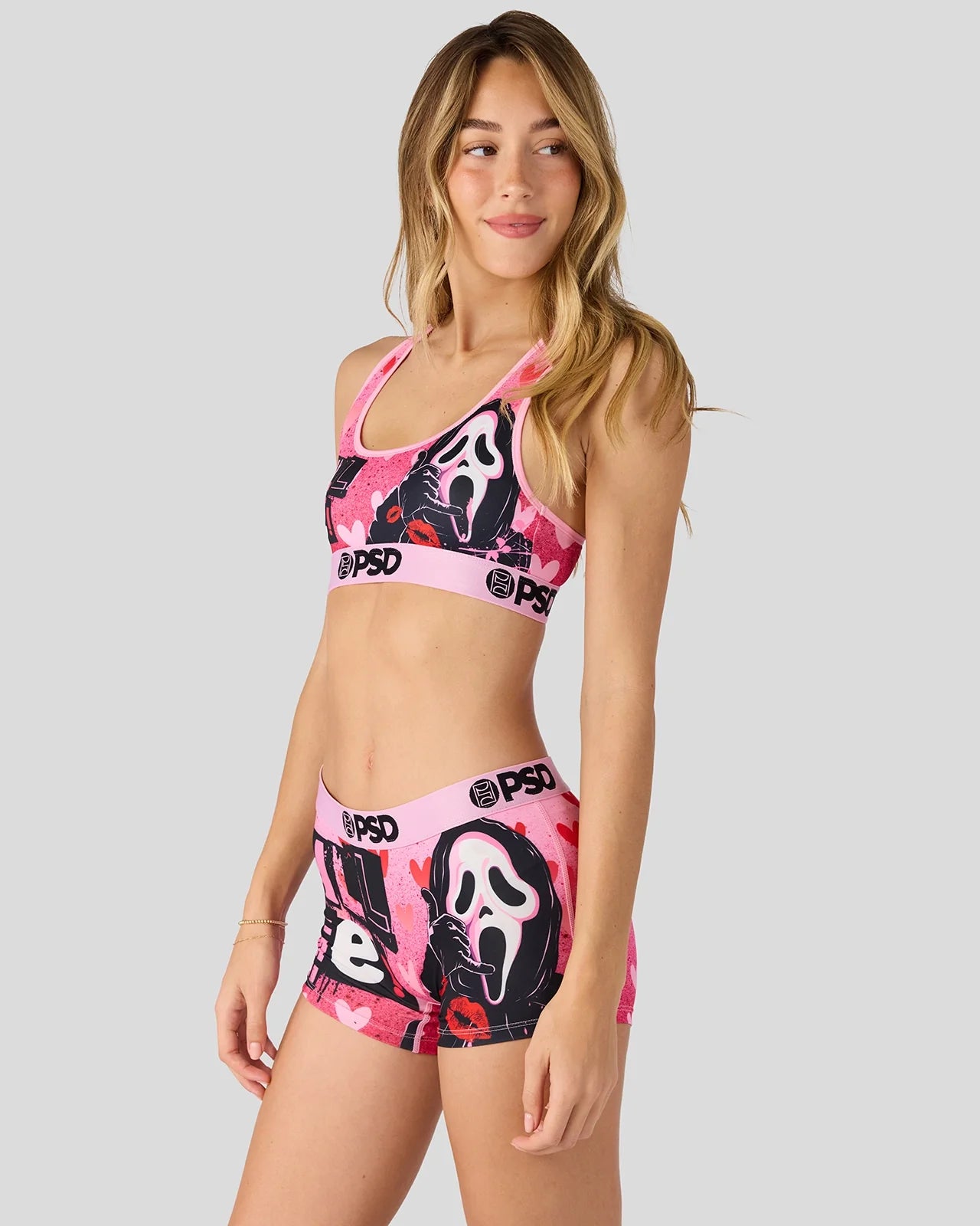 This look from Ghost Face x PSD brings major slasher energy to your rotation. The Call Me Boy Short is made from a silky poly blend with a comfortable full-coverage, keep-you-in fit. The PSD boy shorts are perfect for everyday wear and working out.
