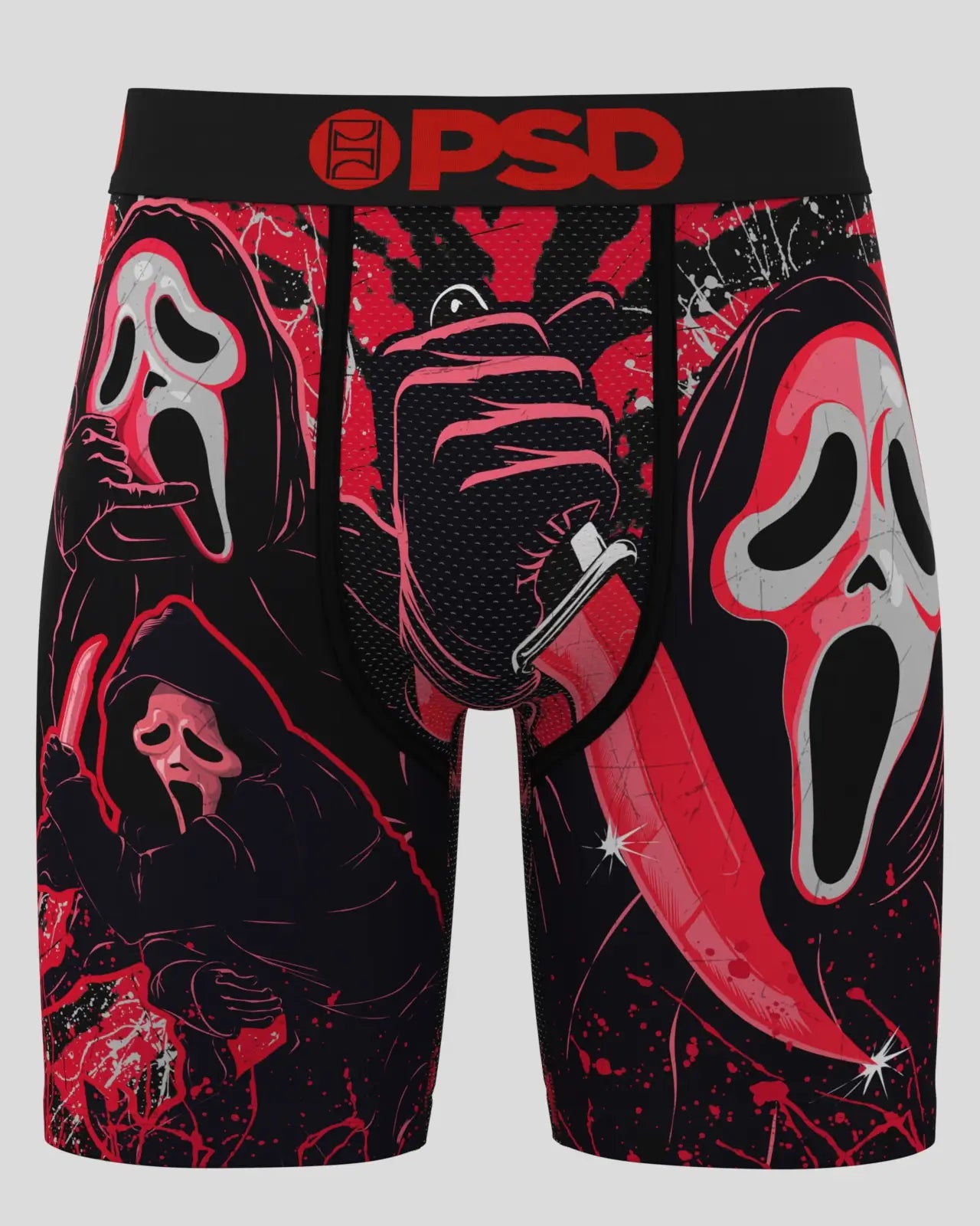 This look from Ghost Face x PSD brings major slasher energy to your rotations. The Call Me briefs include our ultra-comfortable Signature WaistBand, a breathable MicroMesh pouch, and four-way stretch. The PSD 7” Standard Length Briefs won't roll or ride and were built for everything, from everyday wear to your toughest workouts.