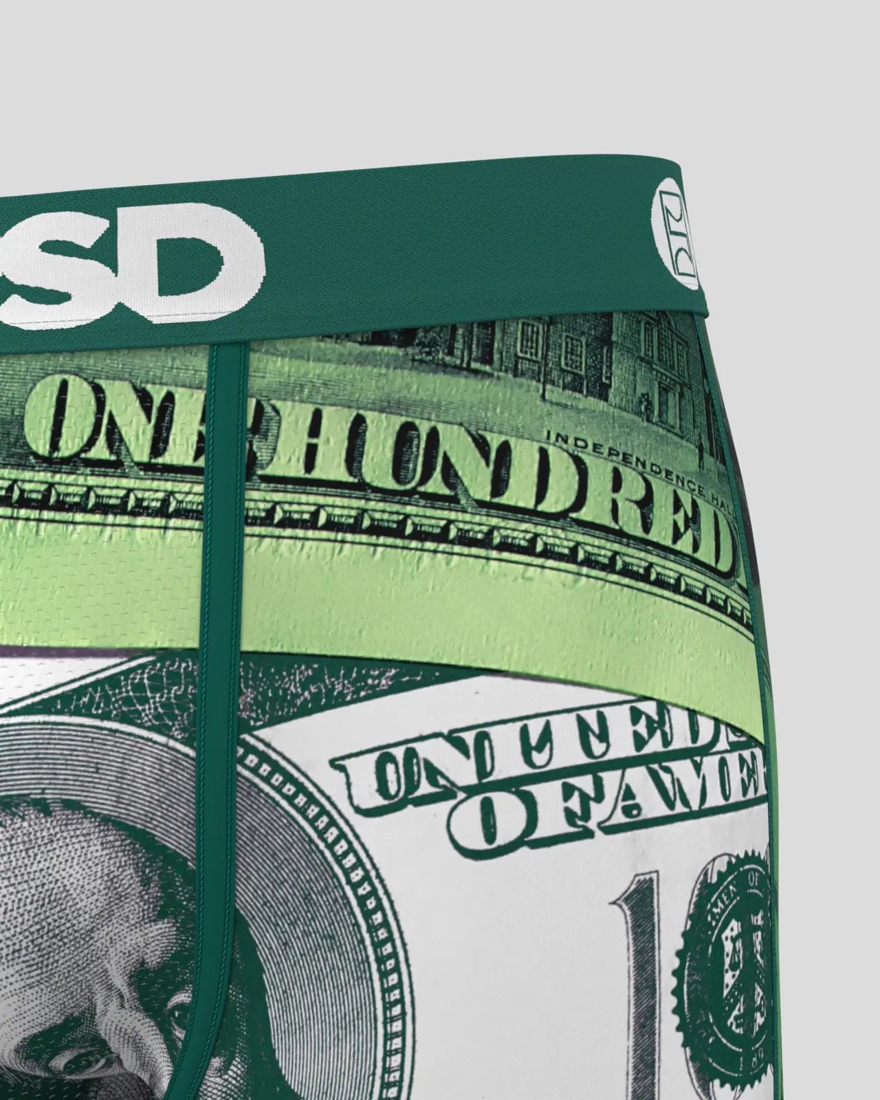 Go big with the Benjamins. With its oversized $100 bills, there’s nothing subtle about this pair. The Green Bens briefs include our ultra-comfortable Signature WaistBand, a breathable MicroMesh pouch, and four-way stretch. The PSD 7” Standard Length Briefs won't roll or ride and were built for everything, from everyday wear to your toughest workouts.