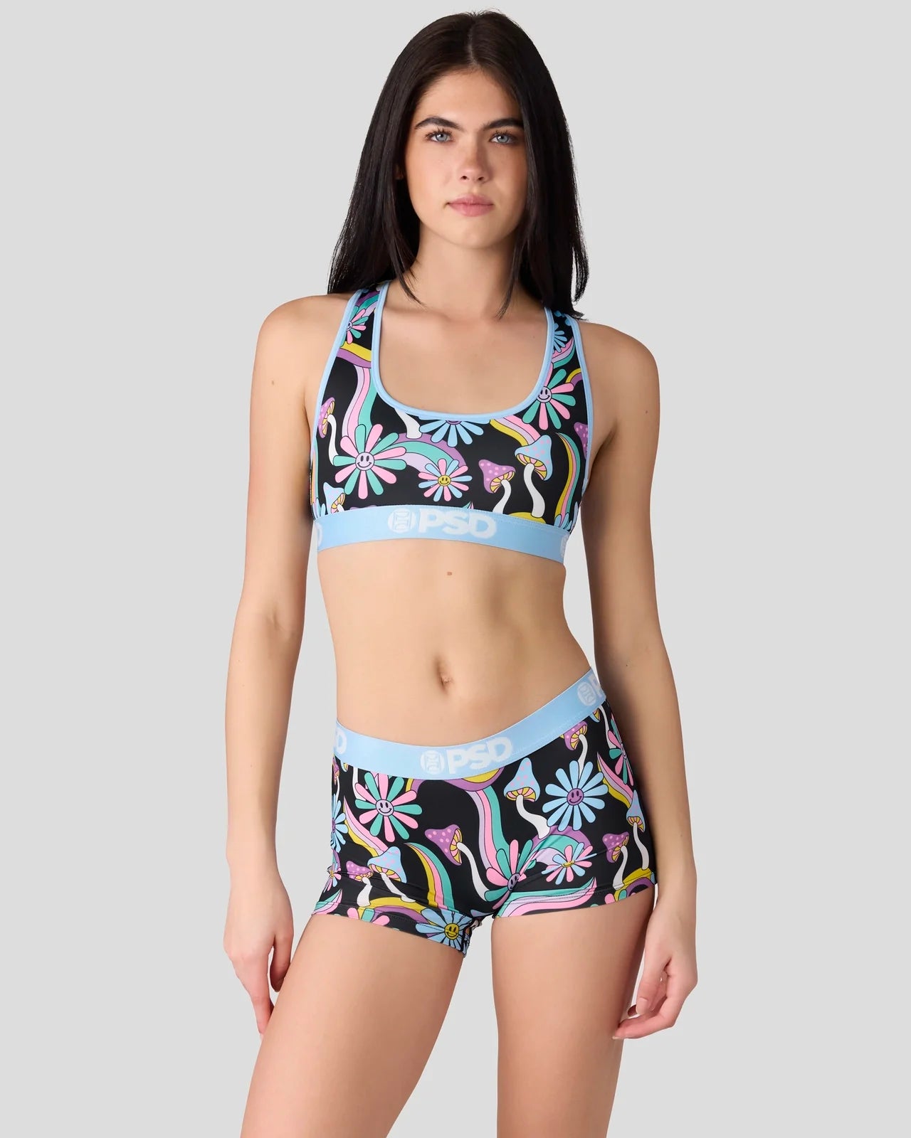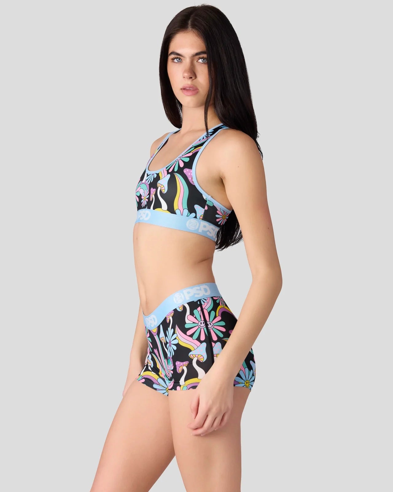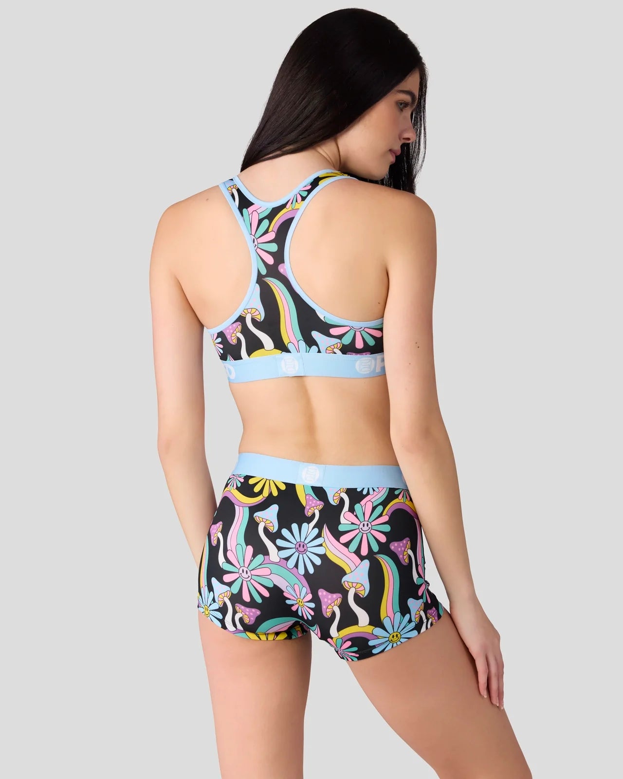 Ready to take a trip? The Happy Shrooms Boy Short is made from a silky poly blend with a comfortable full coverage, keep-you-in fit. The PSD boy shorts are perfect for everyday wear and working out.