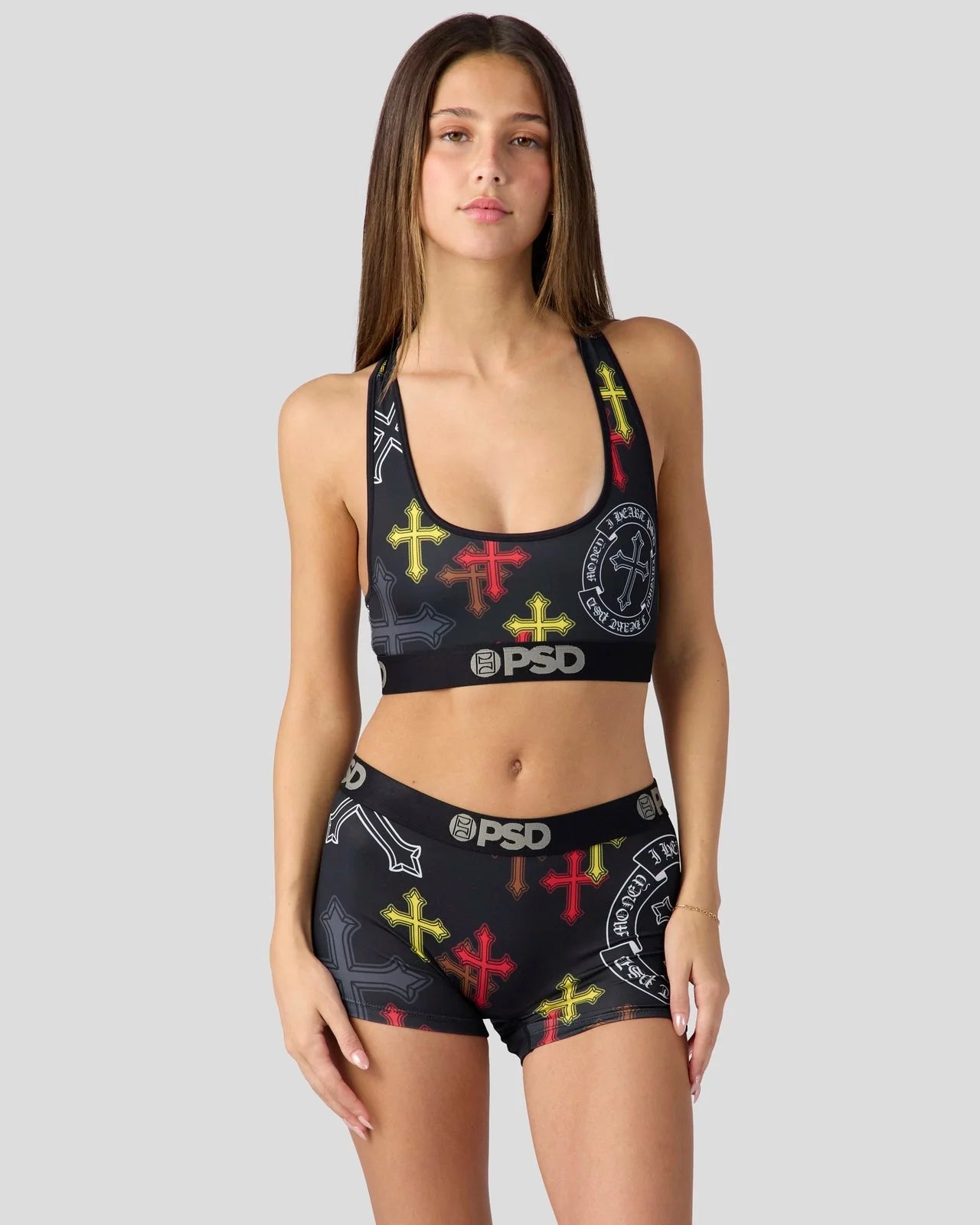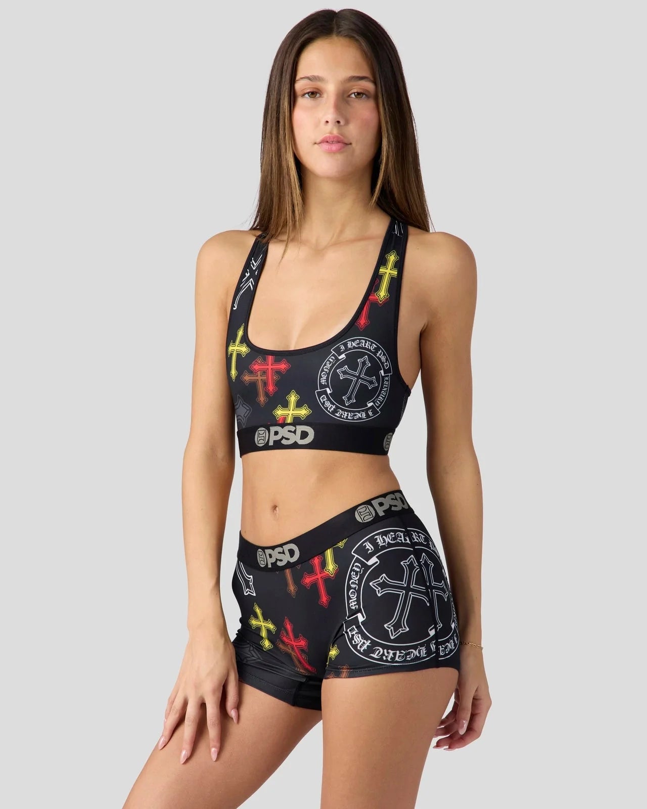 The Heart PSD Sports Bra is made from a silky poly blend and is breathable yet slightly compressive, bringing you the comfort and support you need for everything you get into.