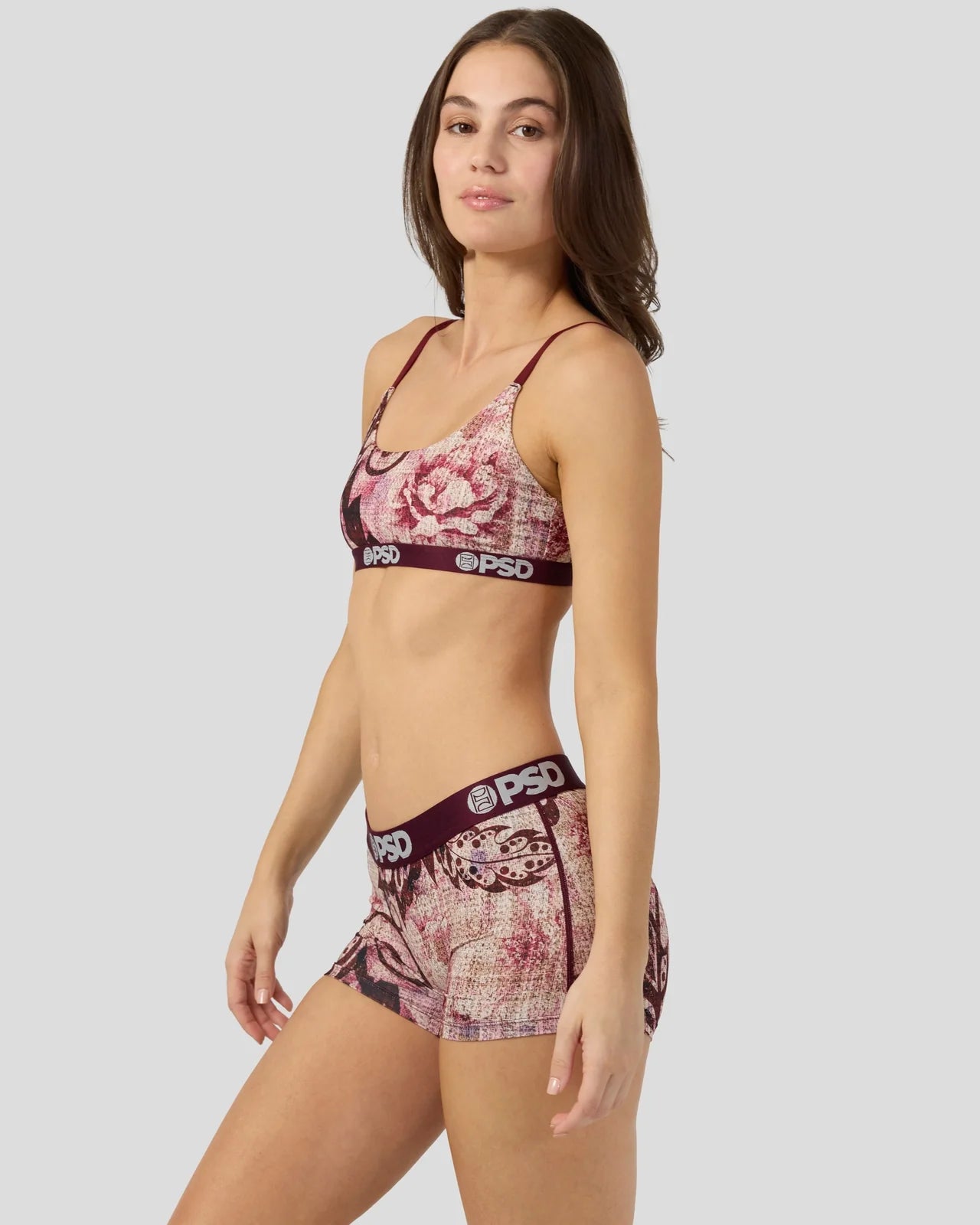 Featuring a vintage-inspired floral print, the Jacquard Bloom Scoop Bralette almost feels like you're not wearing a bra. It’s fully lined and features include adjustable straps, a cute scoop neckline, and a soft microfiber band that won't ride or rub.