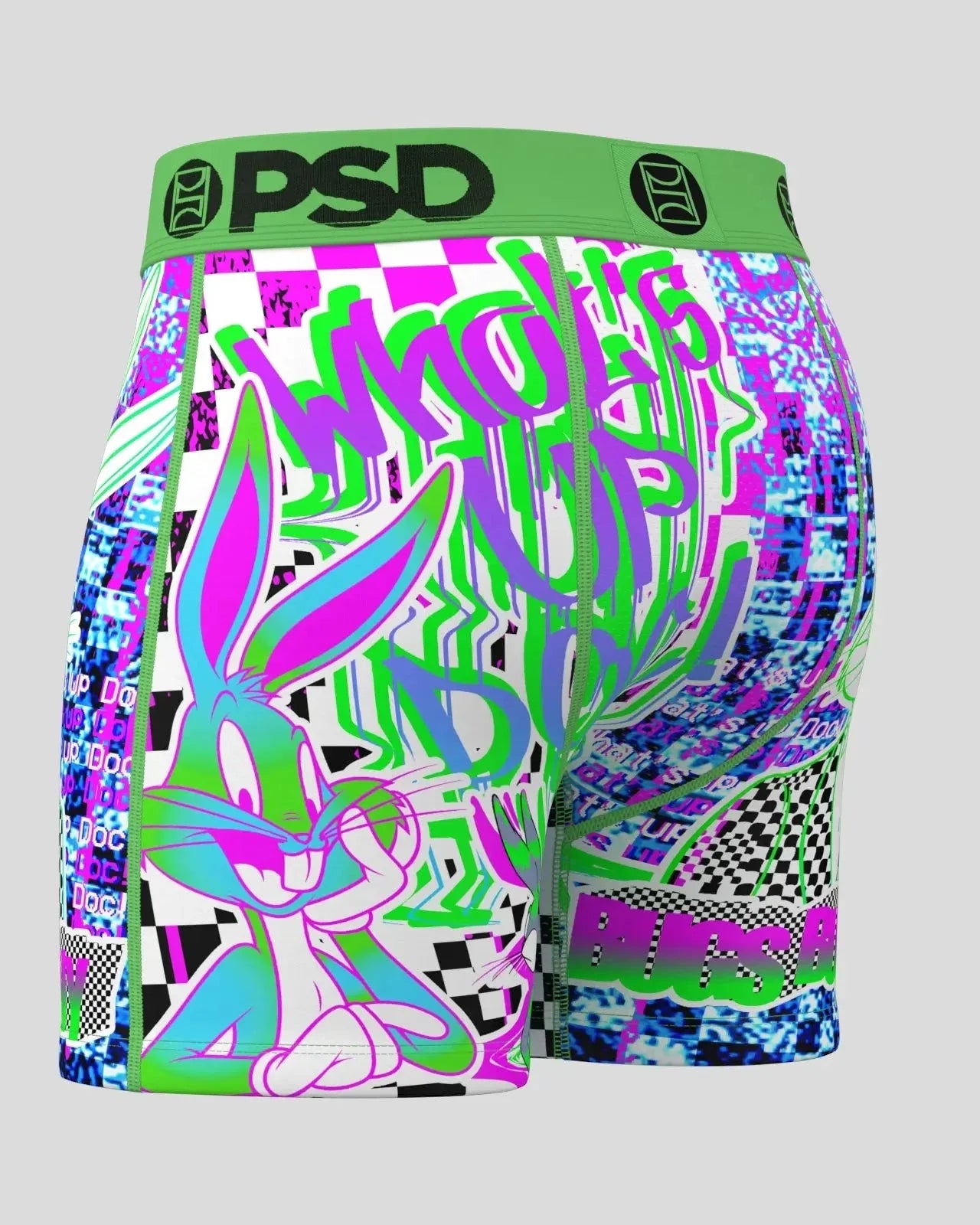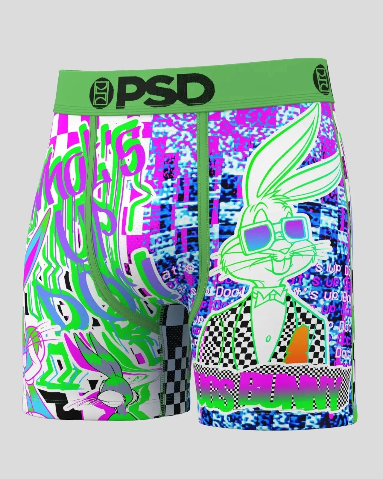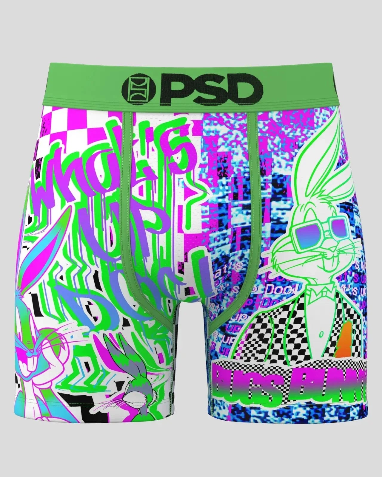 Bugs goes digital with this pair from Looney Tunes x PSD. The Bugs Glitch briefs include our ultra-comfortable Signature WaistBand, a breathable MicroMesh pouch, and four-way stretch. The PSD 5” Mid Length Briefs won't roll or ride and were built for everything, from everyday wear to your toughest workouts.
