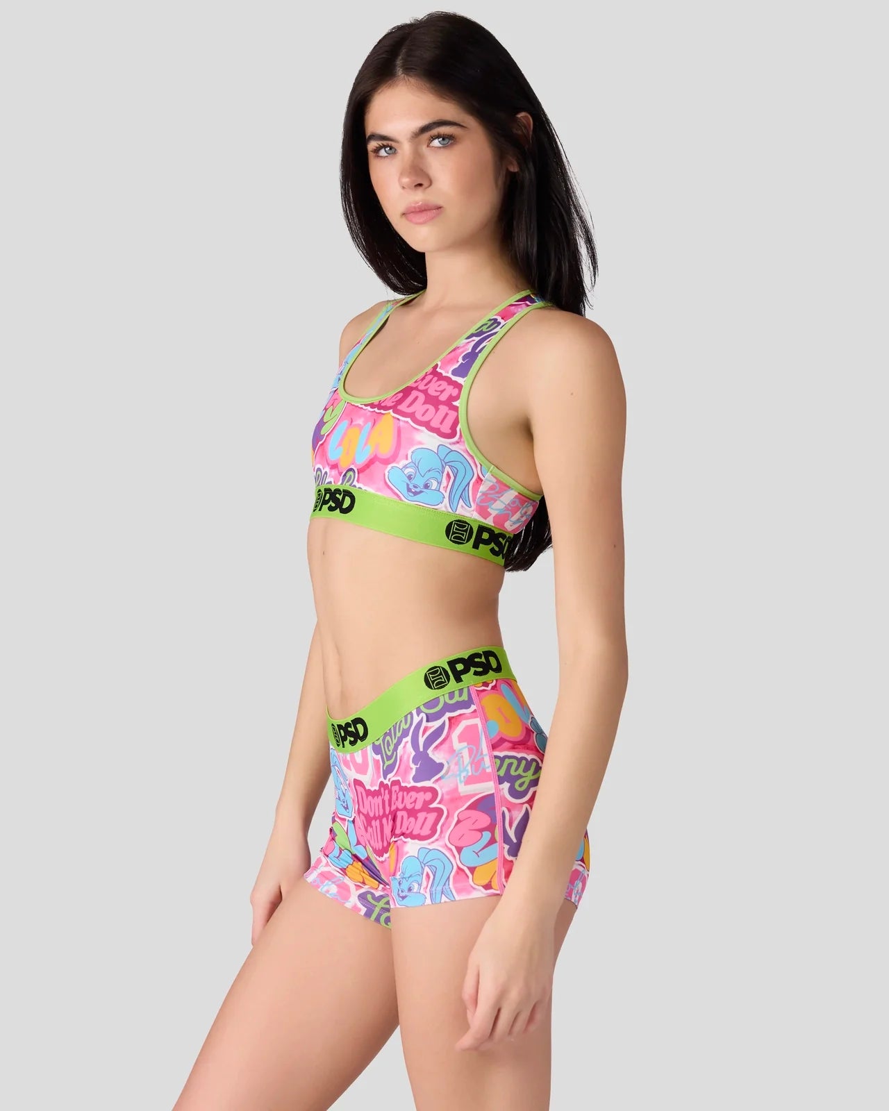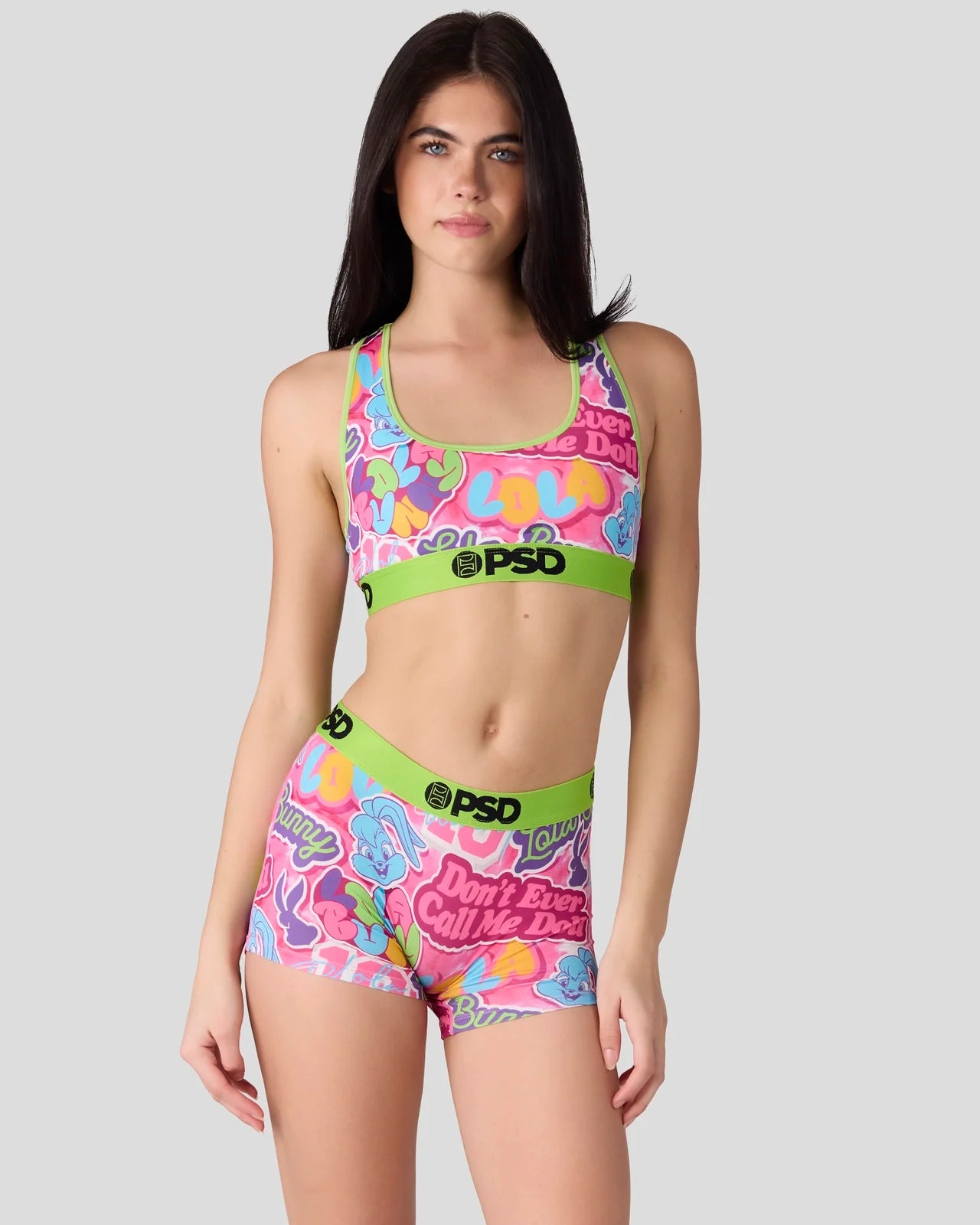 The Don't Call Me Doll Sports Bra from Looney Tunes x PSD is made from a silky poly blend and is breathable yet slightly compressive, bringing you the comfort and support you need for everything you get into.