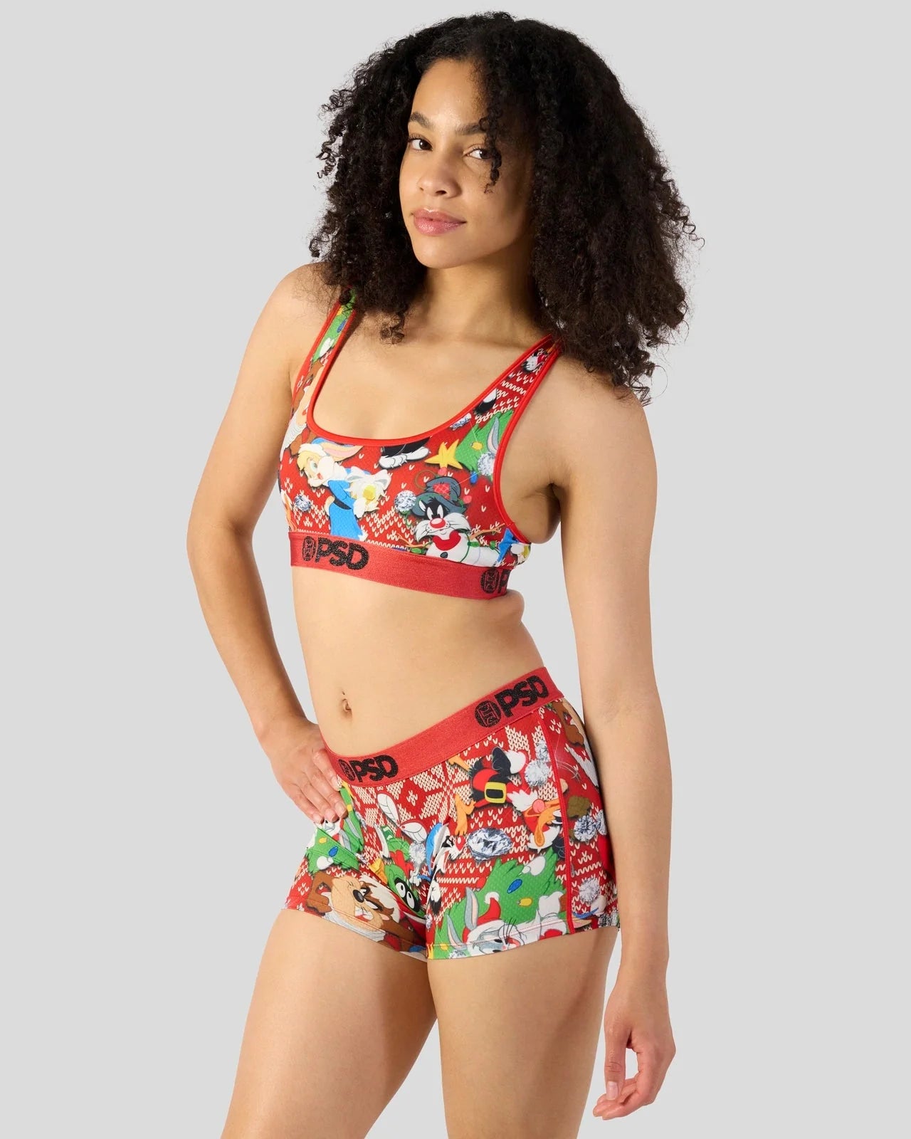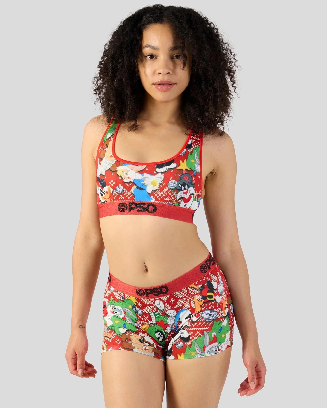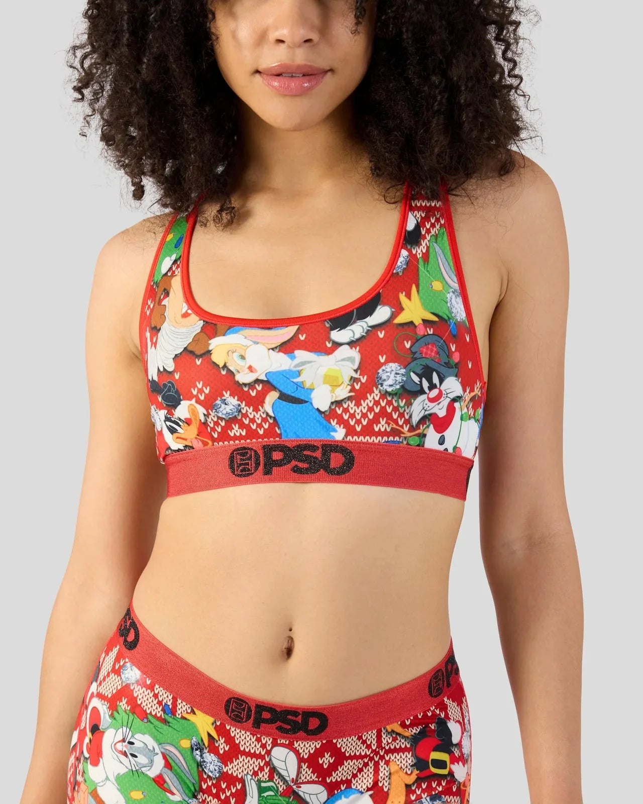 Get a little looney this holiday with this festive new bra from Looney Tunes x PSD. The Looney Holiday Sports Bra is made from a silky poly blend and is breathable yet slightly compressive, bringing you the comfort and support you need for everything you get into.