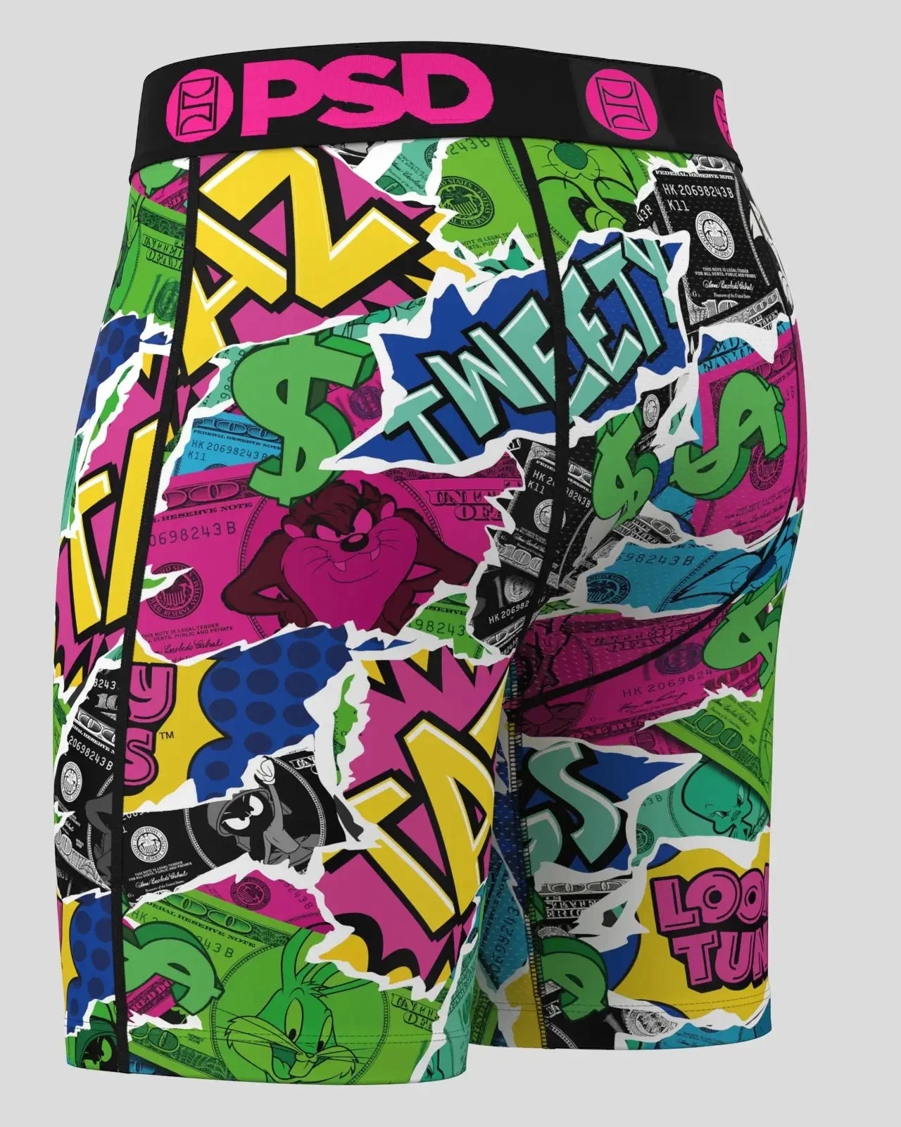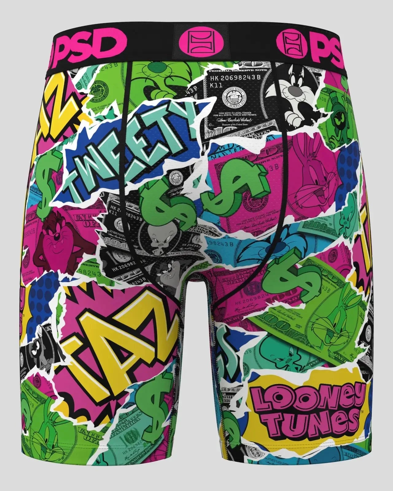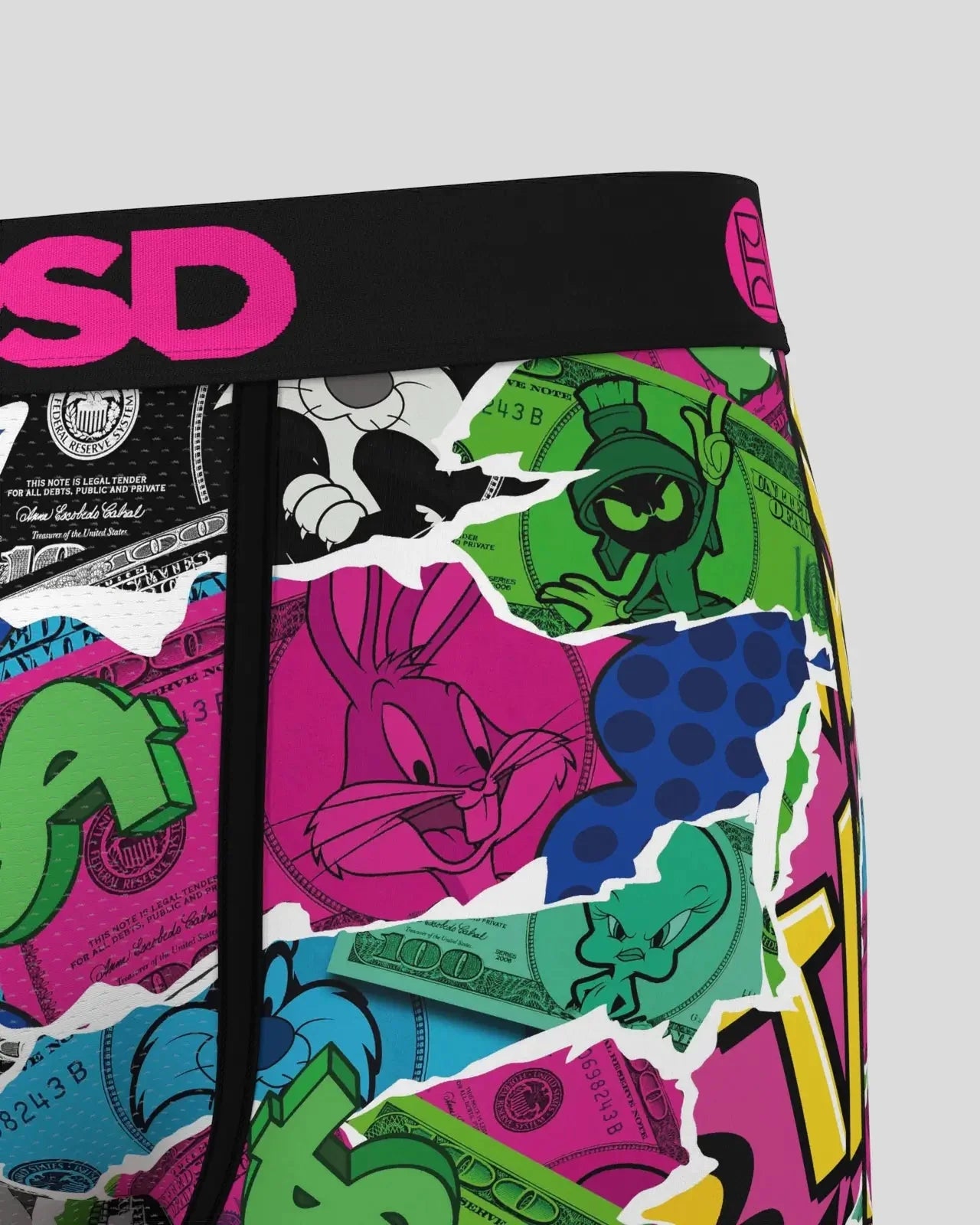 Get your Bugs bag with this new money-themed look from Looney Tunes x PSD. The Looney Money briefs include our ultra-comfortable Signature WaistBand, a breathable MicroMesh pouch, and four-way stretch. The PSD 7” Standard Length Briefs won’t roll or ride and were built for everything, from everyday wear to your toughest workouts.