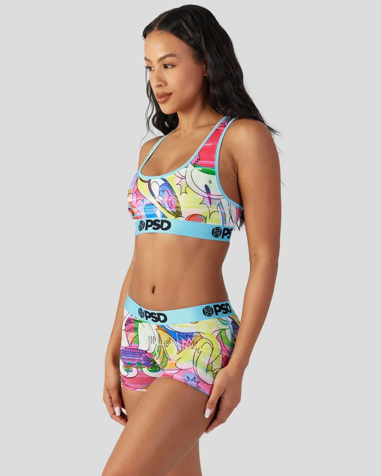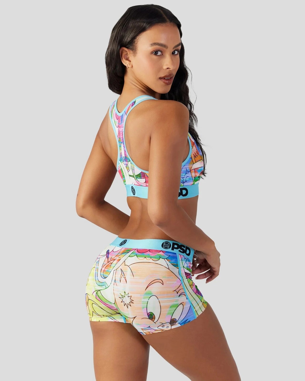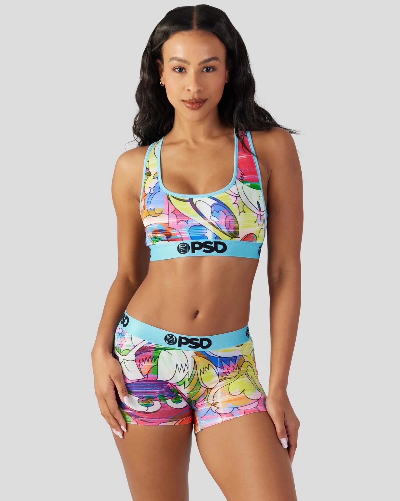 The latest from Looney Tunes x PSD is here. The Trippin Sports Bra is made from a silky poly blend with a comfortable full coverage, keep-you-in fit. The PSD boy shorts are perfect for everyday wear and working out.