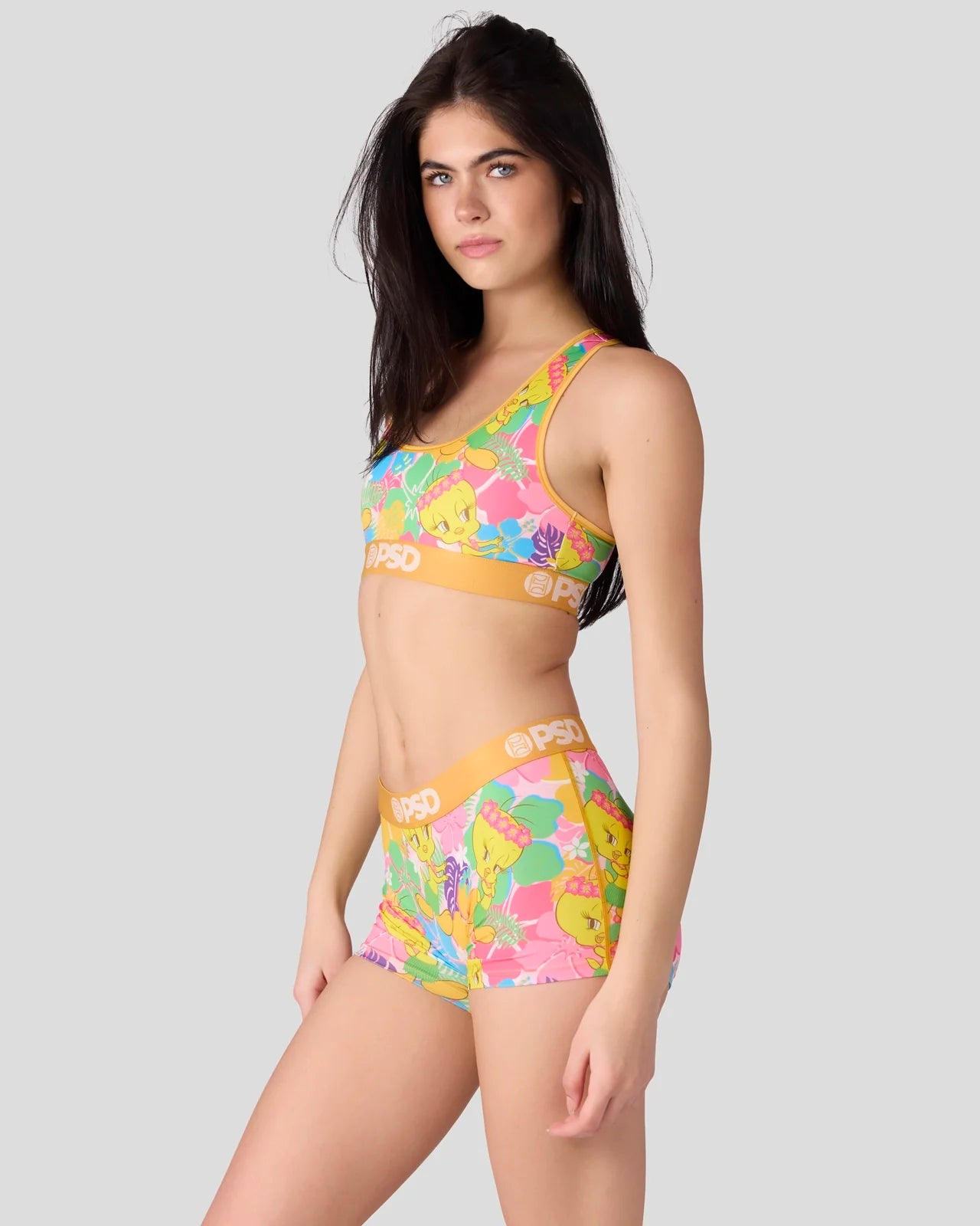 Tweety goes tropical with this new Looney Tunes x PSD drop. The Tweety Hawaii Boy Short is made from a silky poly blend with a comfortable full coverage, keep-you-in fit. The PSD boy shorts are perfect for everyday wear and working out.