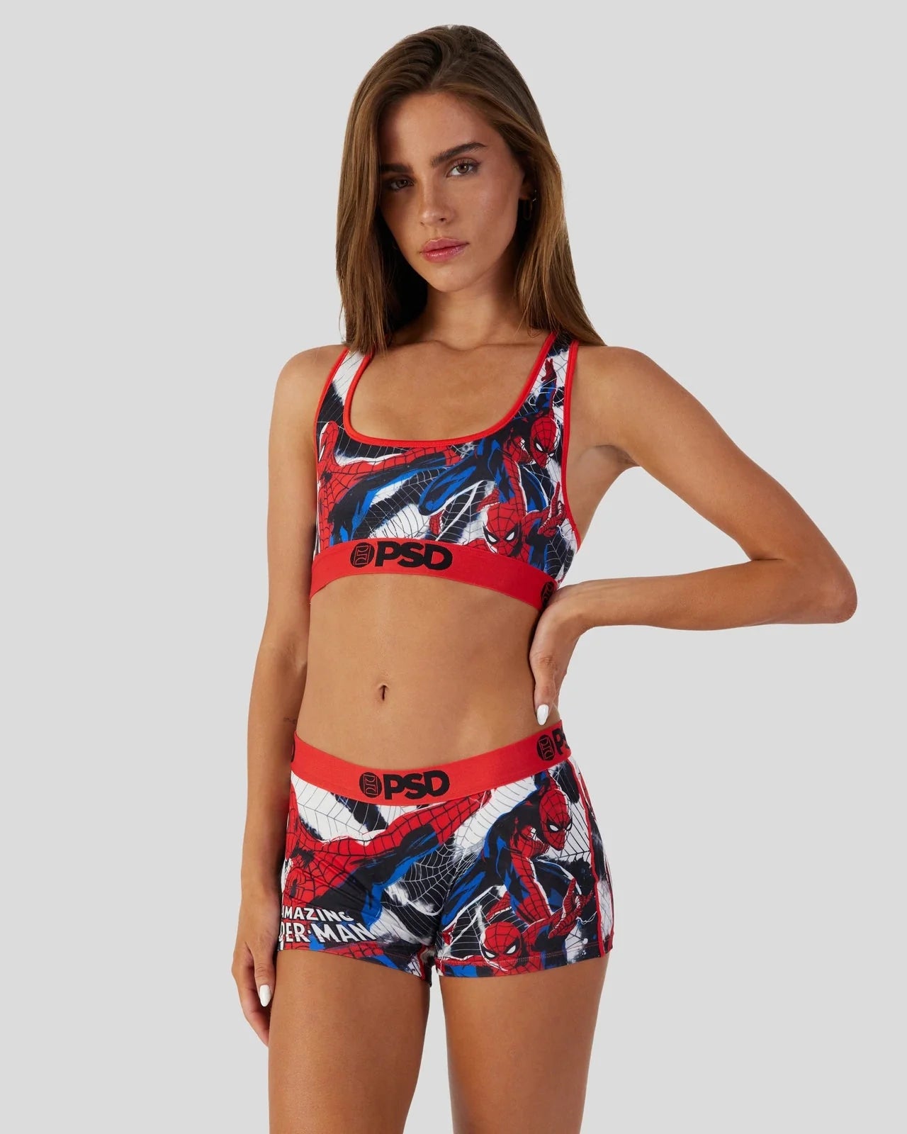 Spider-Man, also known as Peter Parker, is featured with much detail swinging into action across a tie-dye print on these sports bras. Made with our silky poly blend, the Spider-Man Bra is breathable yet slightly compressive, bringing you the touch of comfort and support you need for everything you get into. Whether you’re looking for unique gift ideas for someone or placing an online order for yourself, the Spider-Man Bra will have you prepared for any adventure.