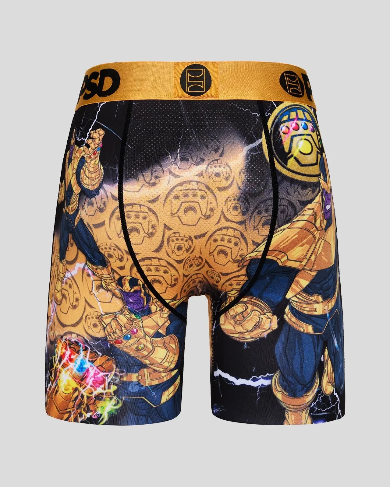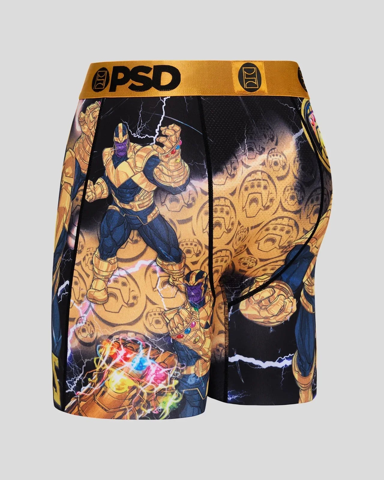 This print features the Mad Titan himself with his gauntlet glove and six powerful infinity stones. With four-way stretch, a breathable MicroMesh pouch, and durable flatlock stitching, these Thanos briefs were built to hold up for everything from everyday wear to the toughest workouts.