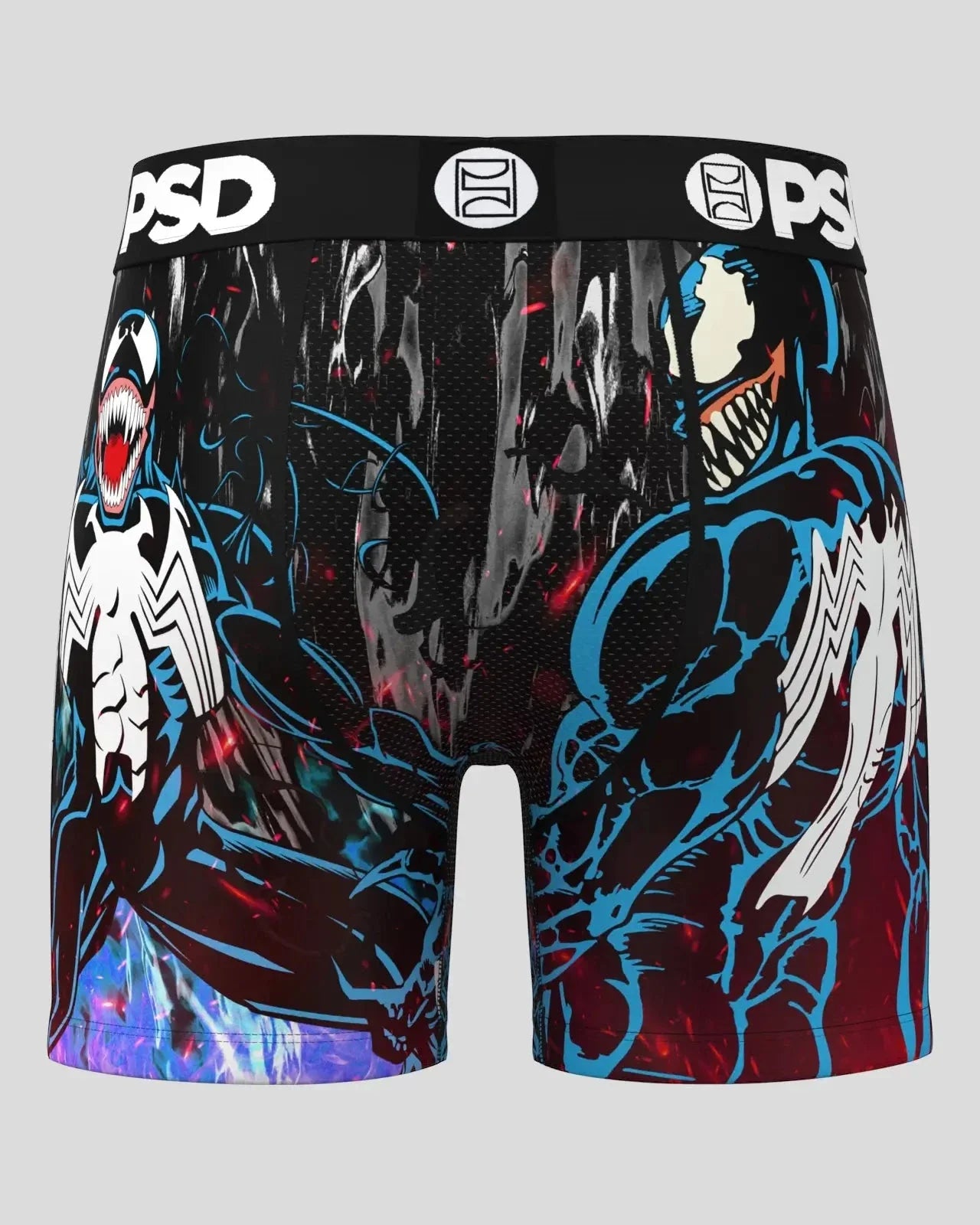 Feel transformed in this new pair from Marvel. The Venom briefs include our ultra-comfortable Signature WaistBand, a breathable MicroMesh pouch, and four-way stretch. The PSD 5” Mid Length Briefs won't roll or ride and were built for everything, from everyday wear to your toughest workouts.