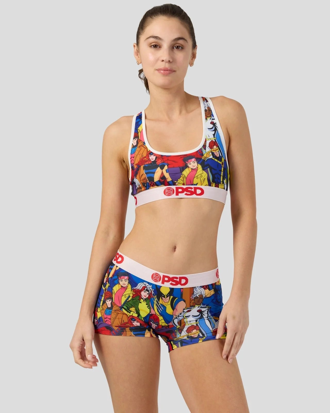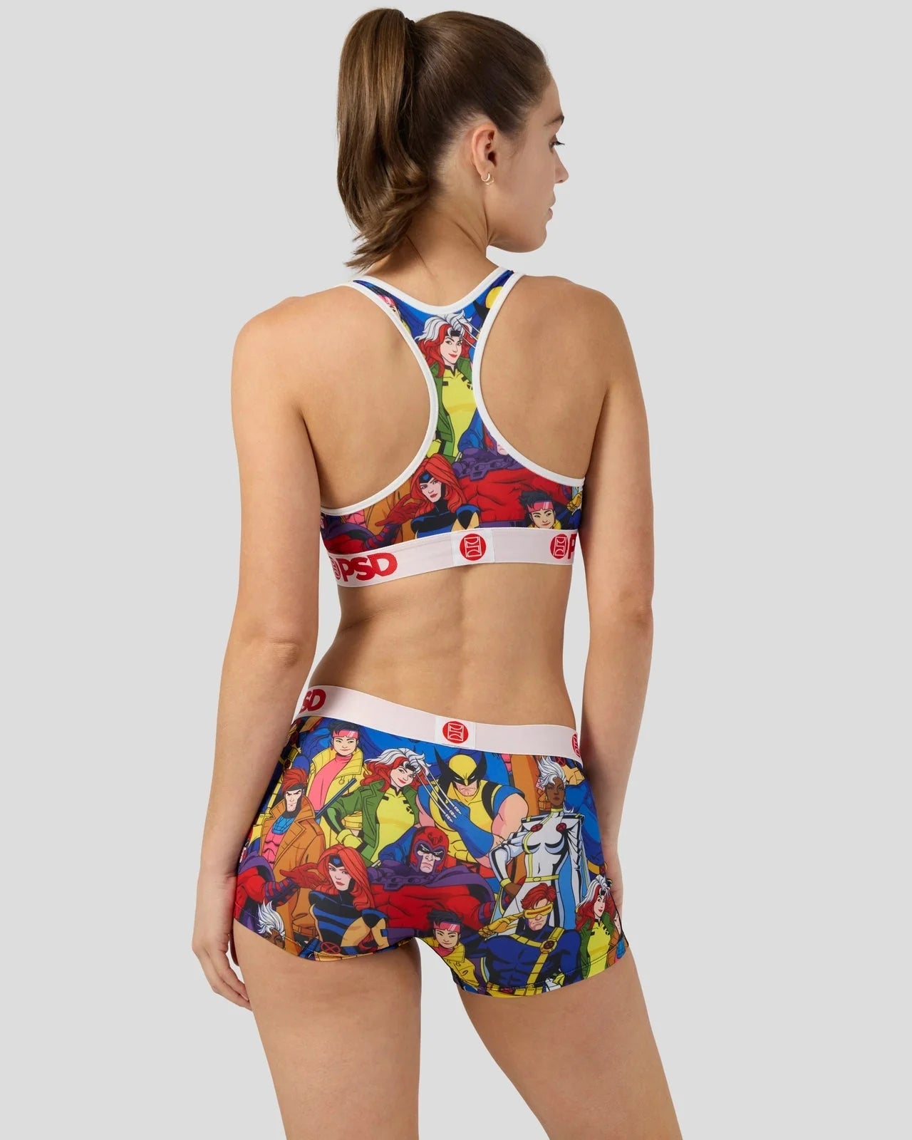 The Squad Sports Bra features members of the X-Men assembled in an all-over print that includes. Made with our silky poly blend, the Sports Bra is breathable yet slightly compressive, bringing you the comfort and support you need for everything you get into.