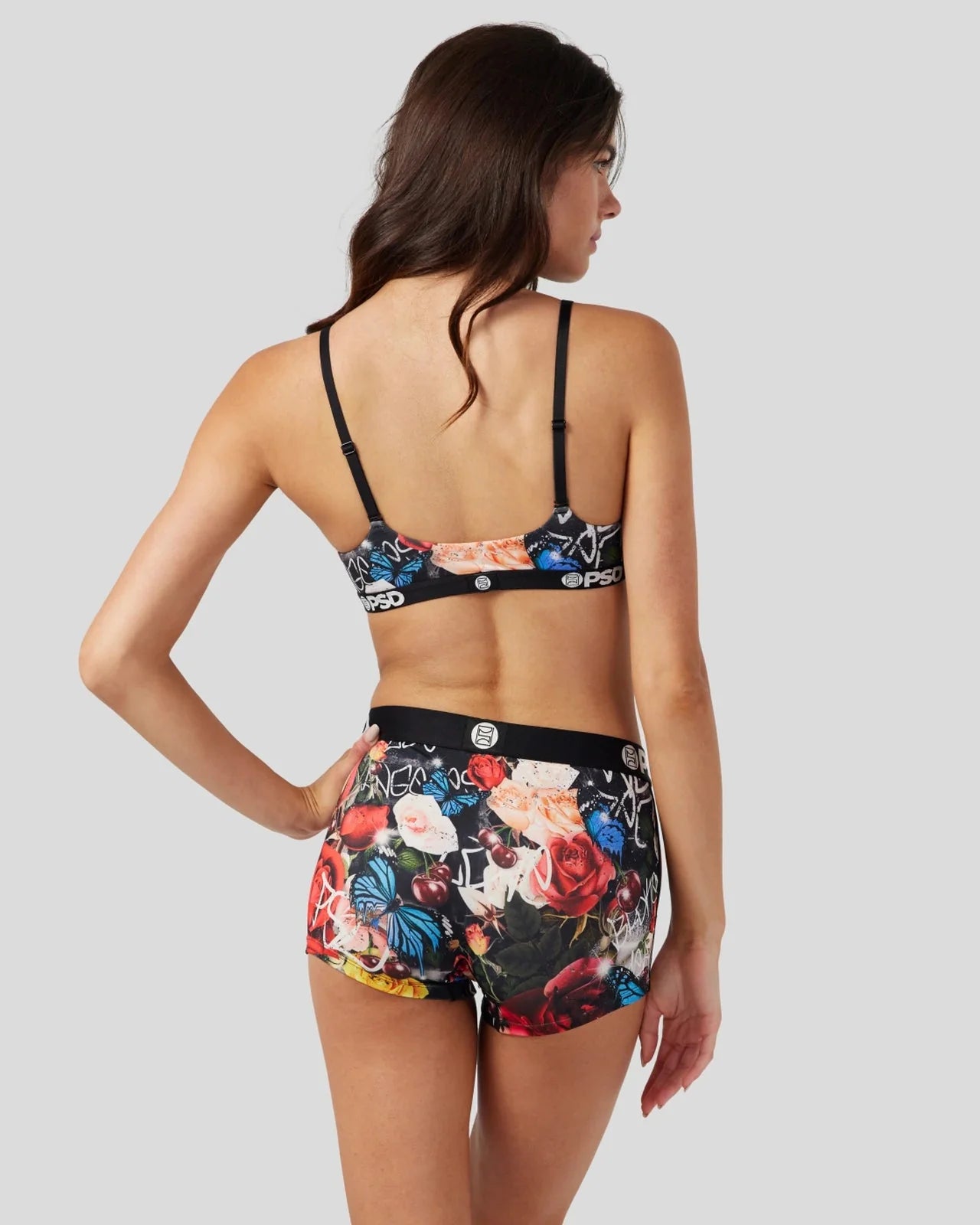 Go grunge in this new women’s style featuring a toughened-up floral print with butterflies and cherries. Made of our silky poly blend, the PSD Melting Dreams Scoop Bralette almost feels like you’re not wearing a bra at all. It’s fully lined and features include adjustable straps, a cute scoop neckline, and a soft microfiber band that won’t ride or rub.