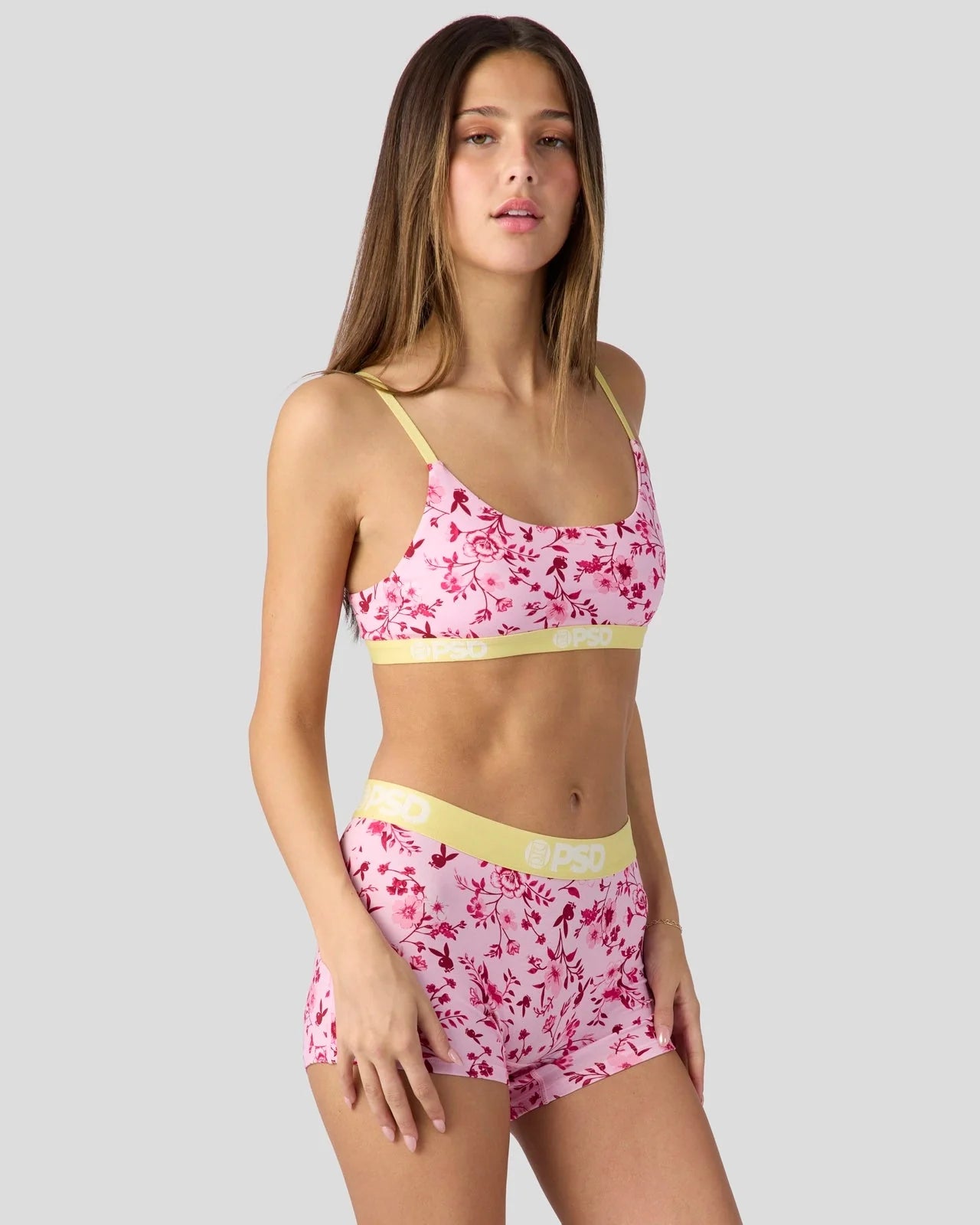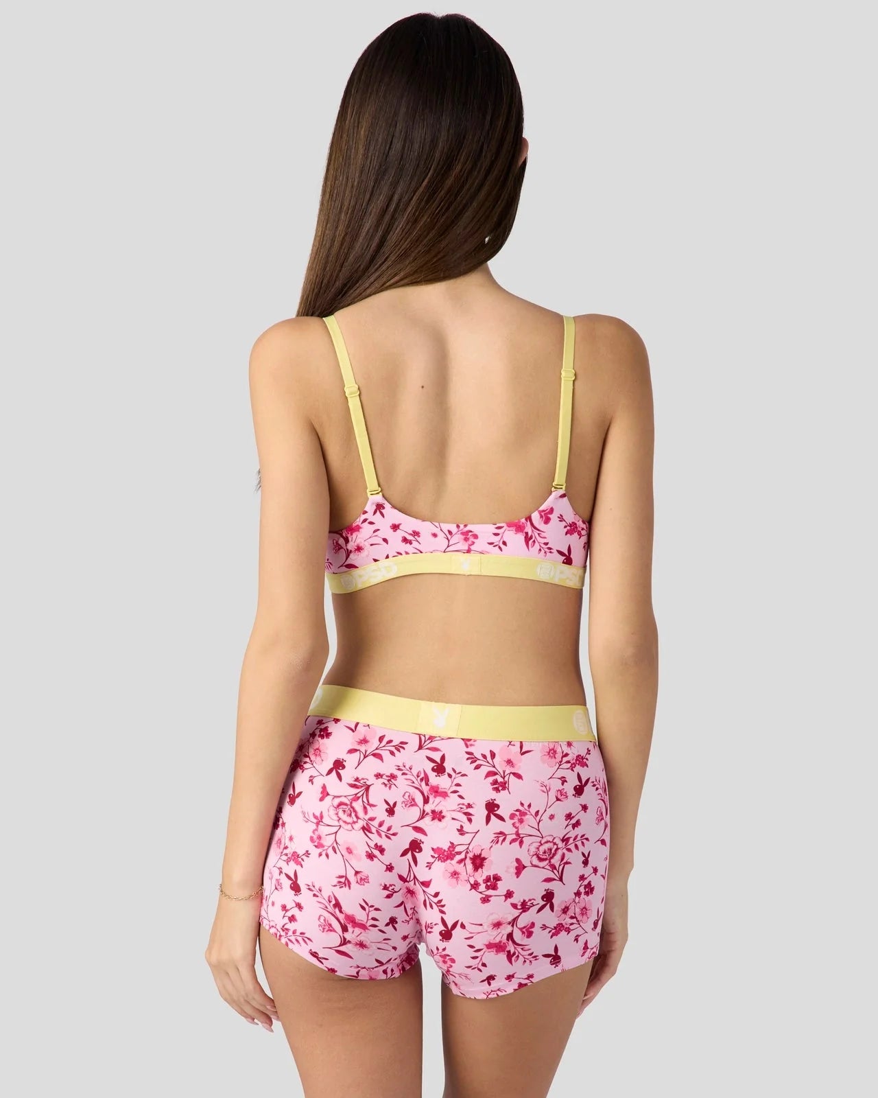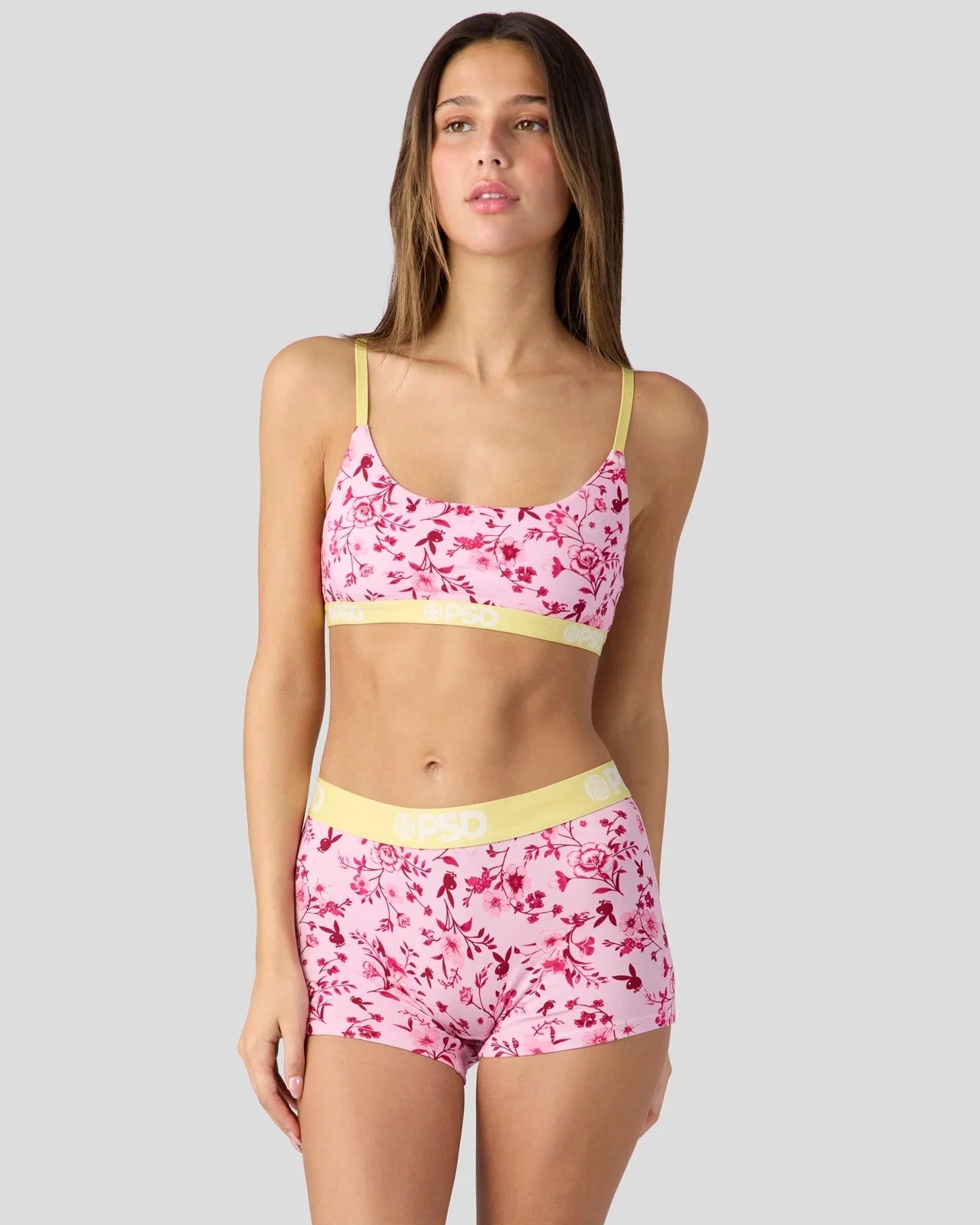 Featuring a ditsy floral print with hidden buddies, don’t miss this new look from Playboy x PSD. Made of a super soft modal blend, the Ditz Modal Scoop Bralette almost feels like you're not wearing a bra at all. It’s fully lined and features include adjustable straps, a cute scoop neckline, and a soft microfiber band that won’t ride or rub.