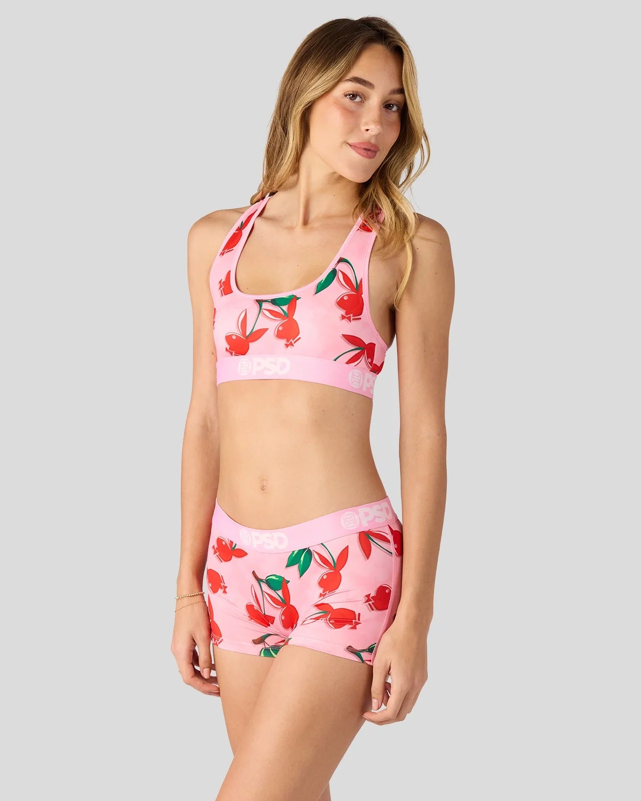 Sweet cherries with an iconic Playboy twist. The Cherry Love Boy Short from Playboy x PSD is made from a silky poly blend with a comfortable full-coverage, keep-you-in fit. The PSD boy shorts are perfect for everyday wear and working out.