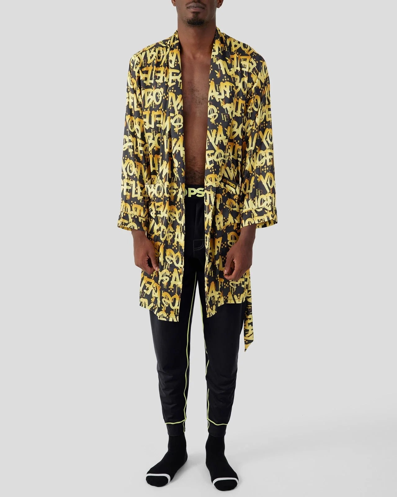 Feel like you’re lounging in luxury in our unisex Robe. Made of a satin-based, silky fabric, it features a classic silhouette with a shawl collar, adjustable or removable belt, and two front pockets.