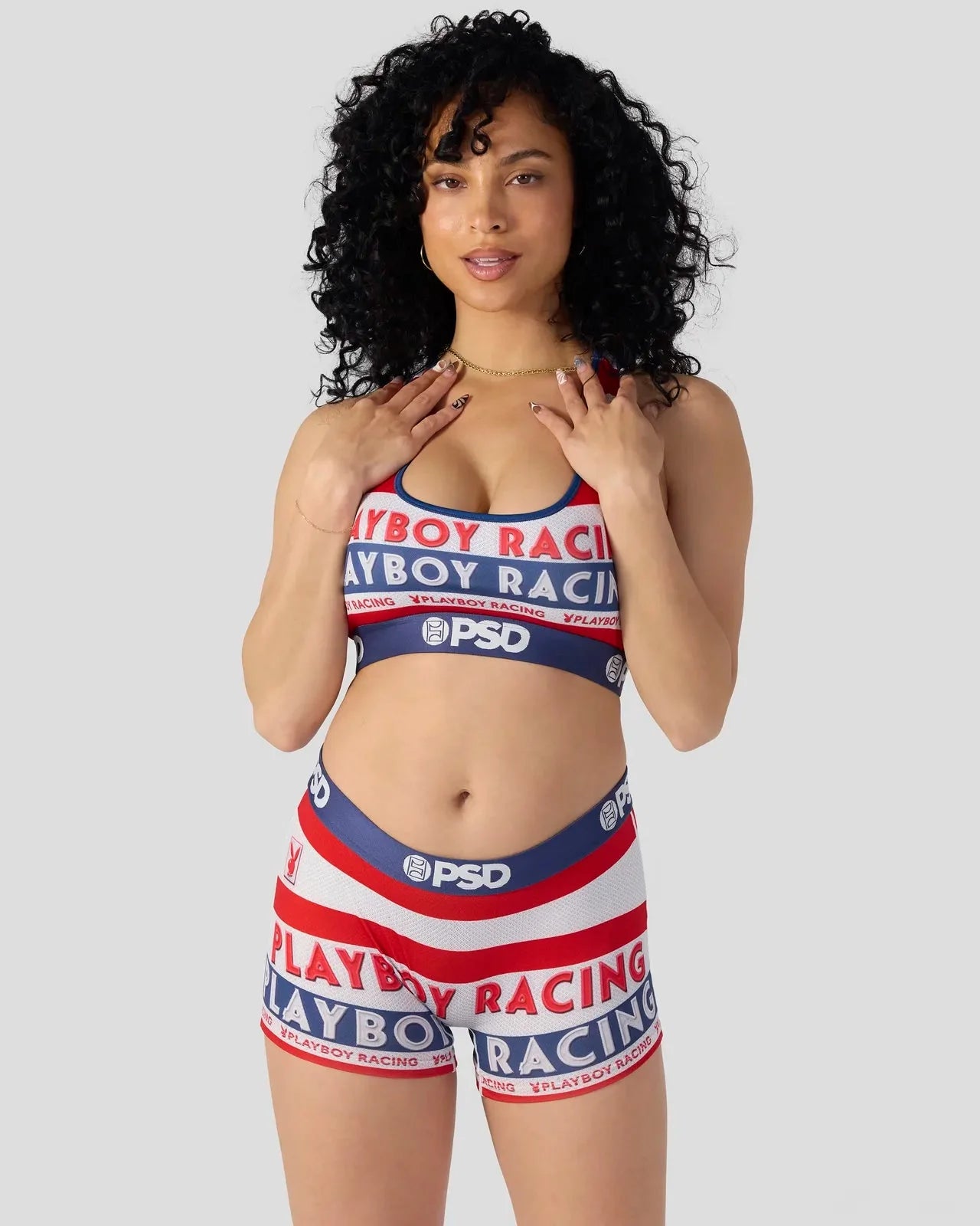 New in the Women’s Playboy x PSD collection! With a racing-inspired look, the Racing Boy Short is made from a silky poly blend with a comfortable full coverage, keep-you-in fit. The PSD boy shorts are perfect for everyday wear and working out.