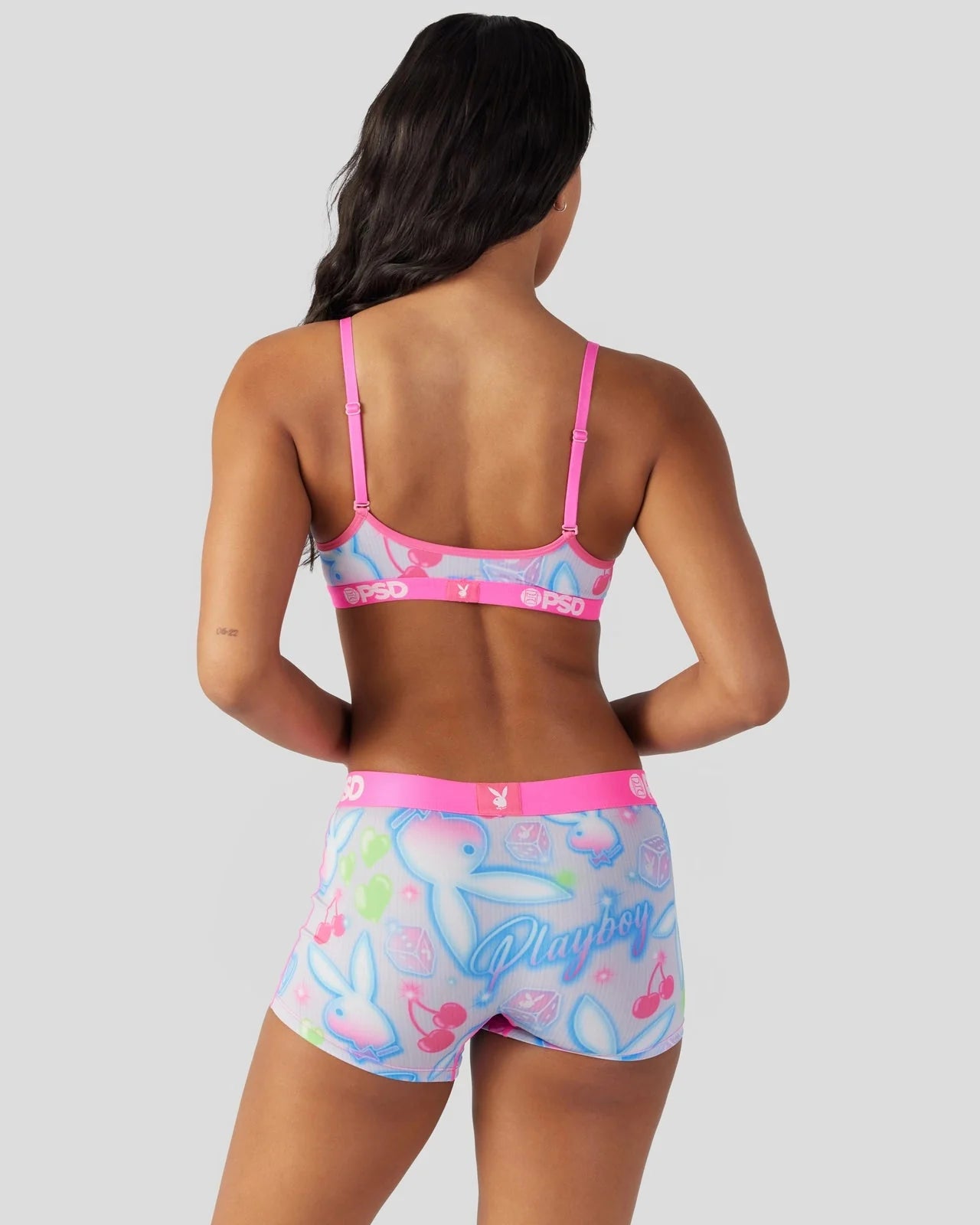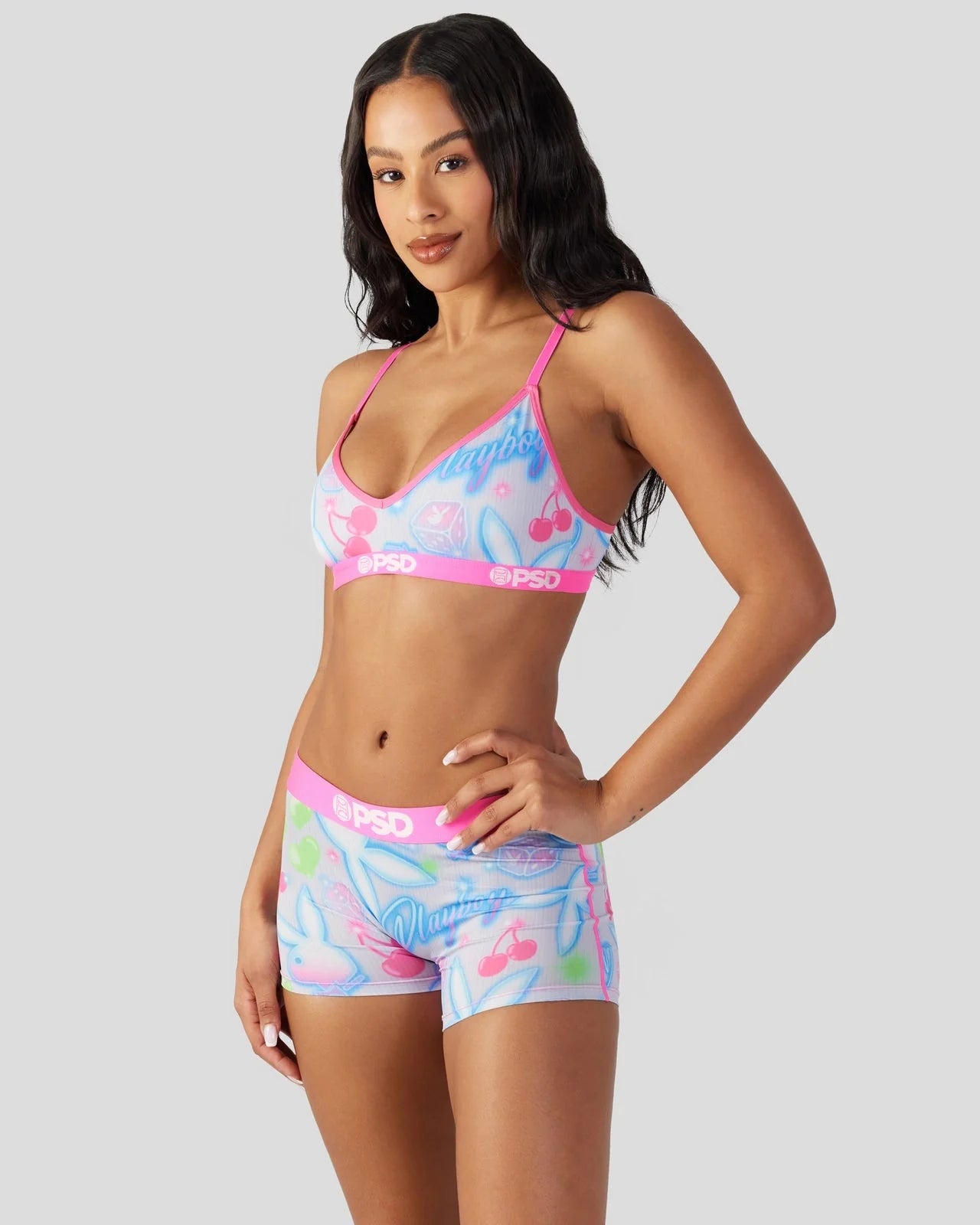 New from Playboy x PSD! Featuring a cute and colorful print perfect for warm-weather seasons, and made of soft and silky fabric, the Summer V-Neck Bralette is light and breathable so you barely feel like it’s there. It gives you full coverage and medium support for those days when you need to wear a bra but really don't want to.