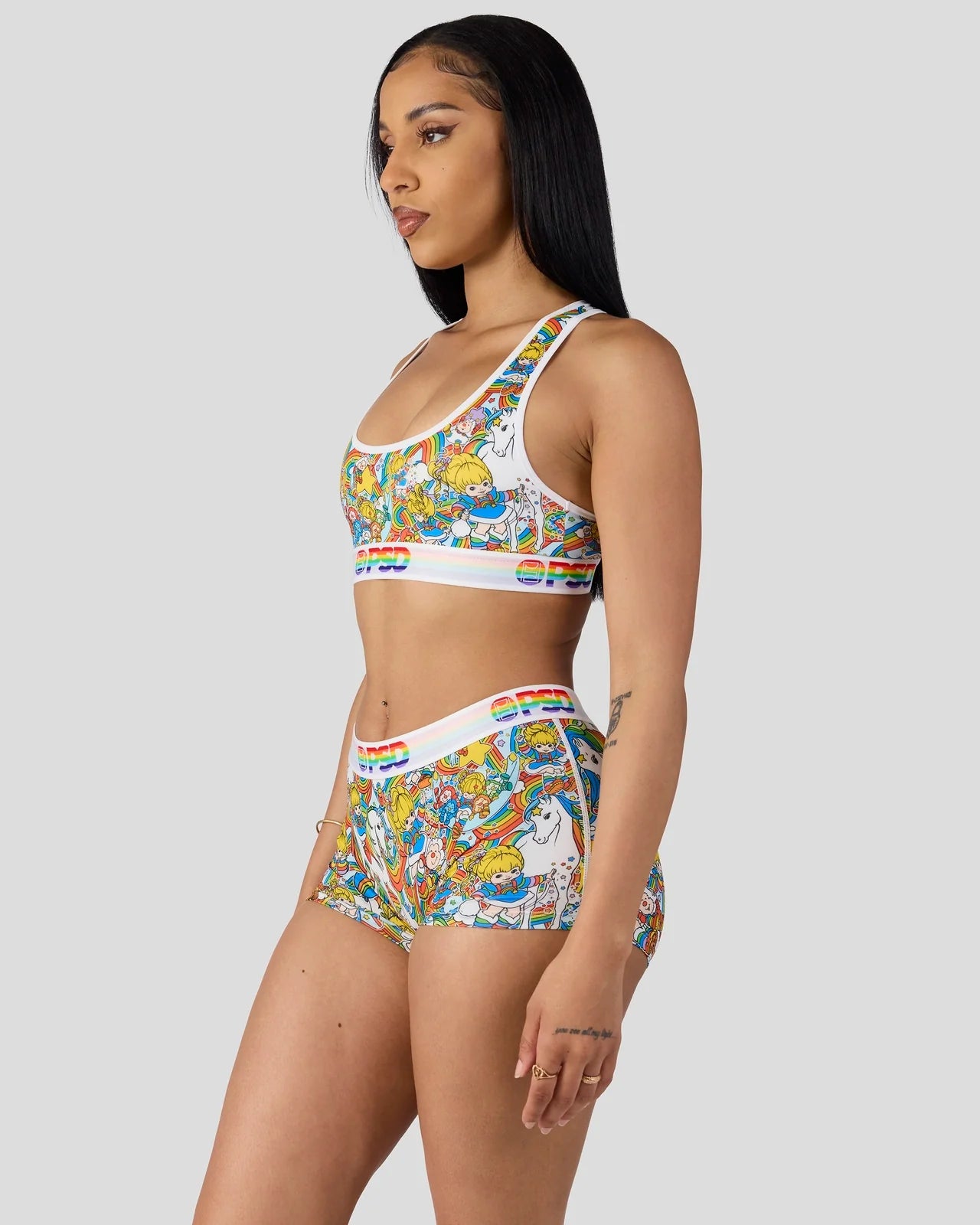 New from Rainbow Brite x PSD, the Rainbow Twist Boy Short is made from a silky poly blend with a comfortable full coverage, keep-you-in fit. The PSD boy shorts are perfect for everyday wear and working out.