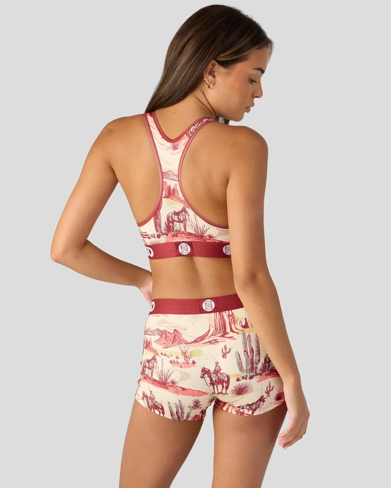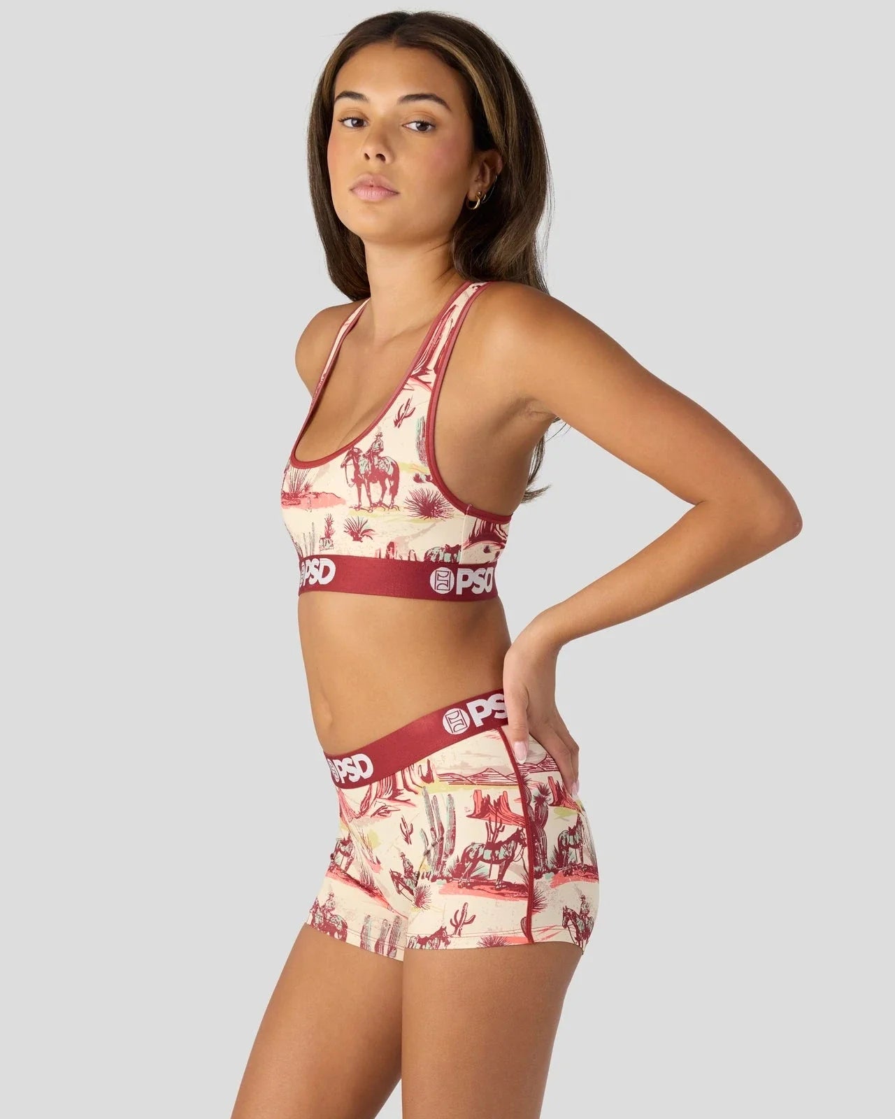 Put a little west in your wear with this new look. The Ranch Life Boy Short is made from a silky poly blend with a comfortable full coverage, keep-you-in fit. The PSD boy shorts are perfect for everyday wear and working out.