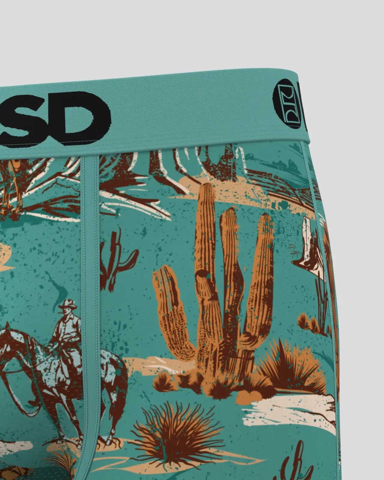The Ranch Life Teal briefs include our ultra-comfortable Signature WaistBand, a breathable MicroMesh pouch, and four-way stretch. The PSD 7” Standard Length Briefs won't roll or ride and were built for everything, from everyday wear to your toughest workouts.