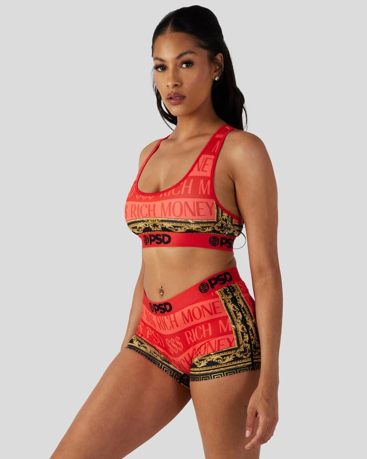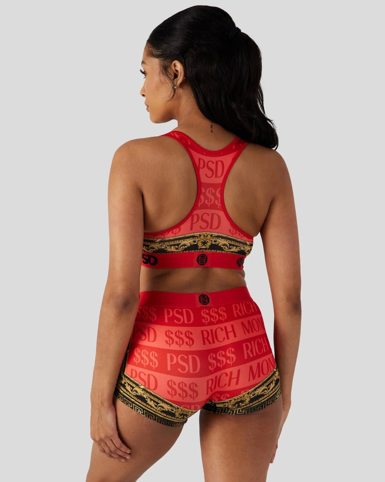 Manifest your financial destiny in a bra covered in dollar signs. The PSD Rich Money Sports Bra is made with our silky poly blend and is breathable yet slightly compressive, bringing you the comfort and support you need for everything you get into. This style is available in sizes XS - 5XL.