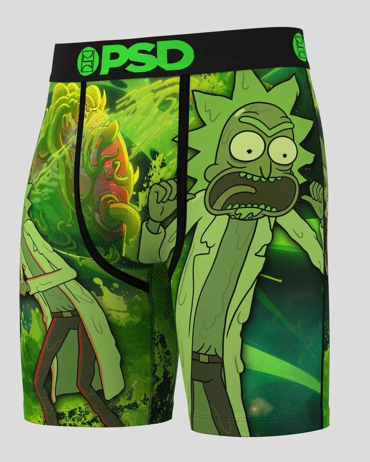 The Slime Rick briefs from Rick and Morty x PSD include our ultra-comfortable Signature WaistBand, a breathable MicroMesh pouch, and four-way stretch. The PSD 7” Standard Length Briefs won't roll or ride and were built for everything, from everyday wear to your toughest workouts.