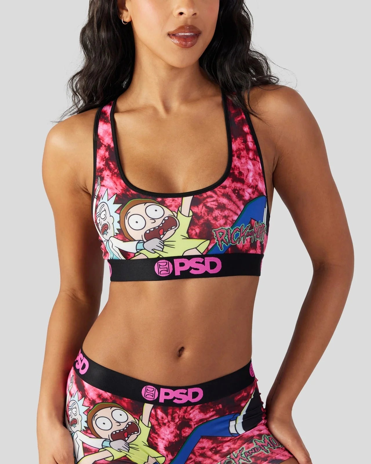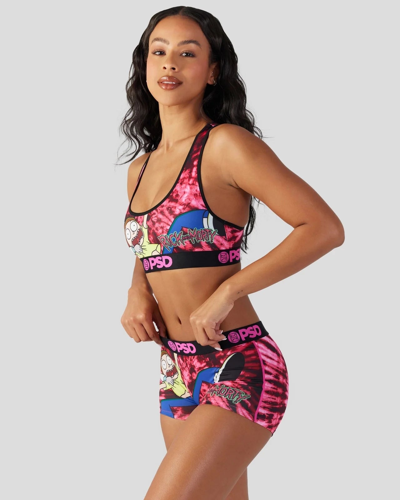 Get sucked into a time warp in this new style from Rick and Morty x PSD. The Warp Sports Bra is made from a silky poly blend with a comfortable full coverage, keep-you-in fit. The PSD boy shorts are perfect for everyday wear and working out.