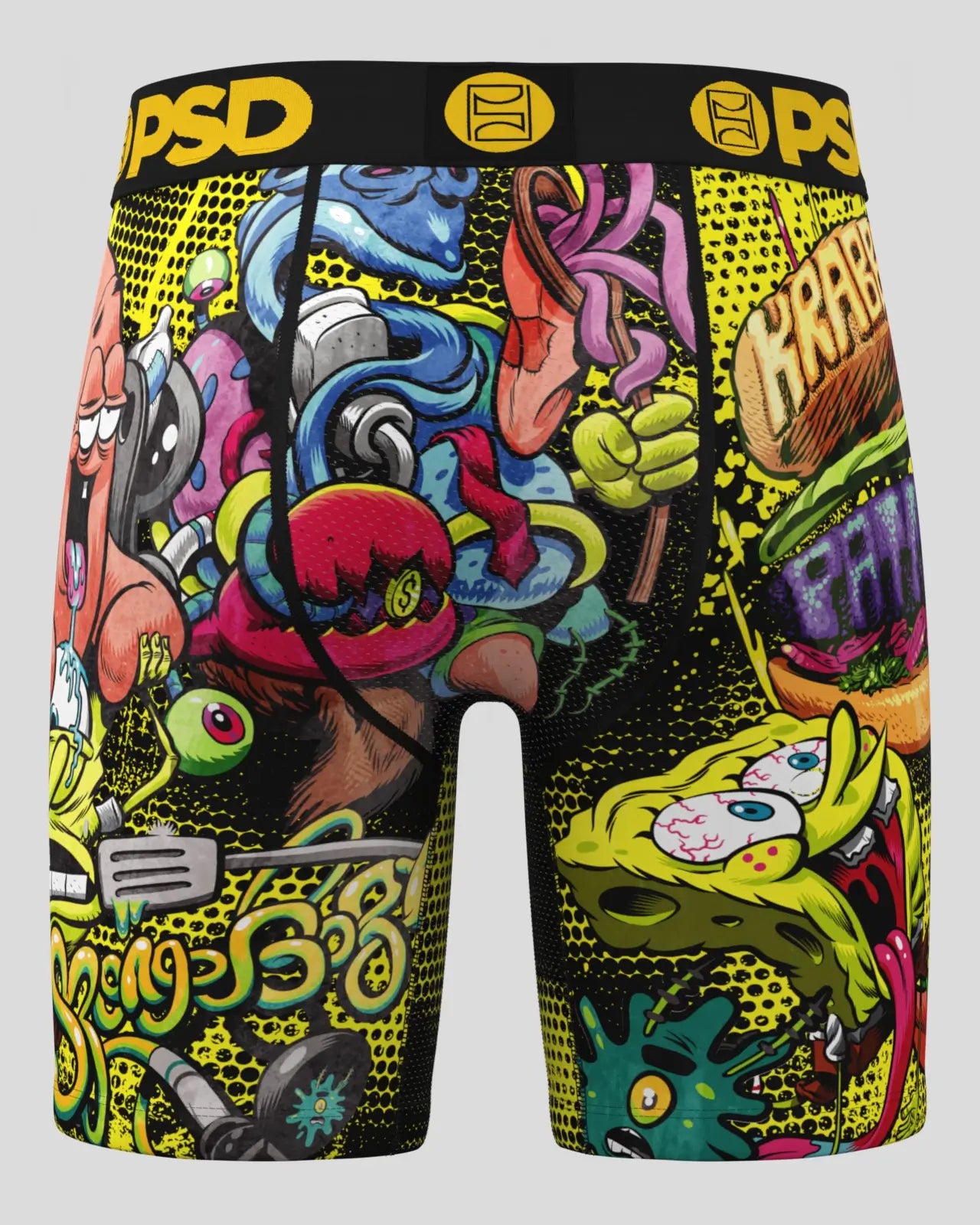 Get ready to make waves with this wacky new pair from SpongeBob SquarePants x PSD. The Krabby Patty briefs include our ultra-comfortable Signature WaistBand, a breathable MicroMesh pouch, and four-way stretch. The PSD 7” Standard Length Briefs won't roll or ride and were built for everything, from everyday wear to your toughest workouts.
