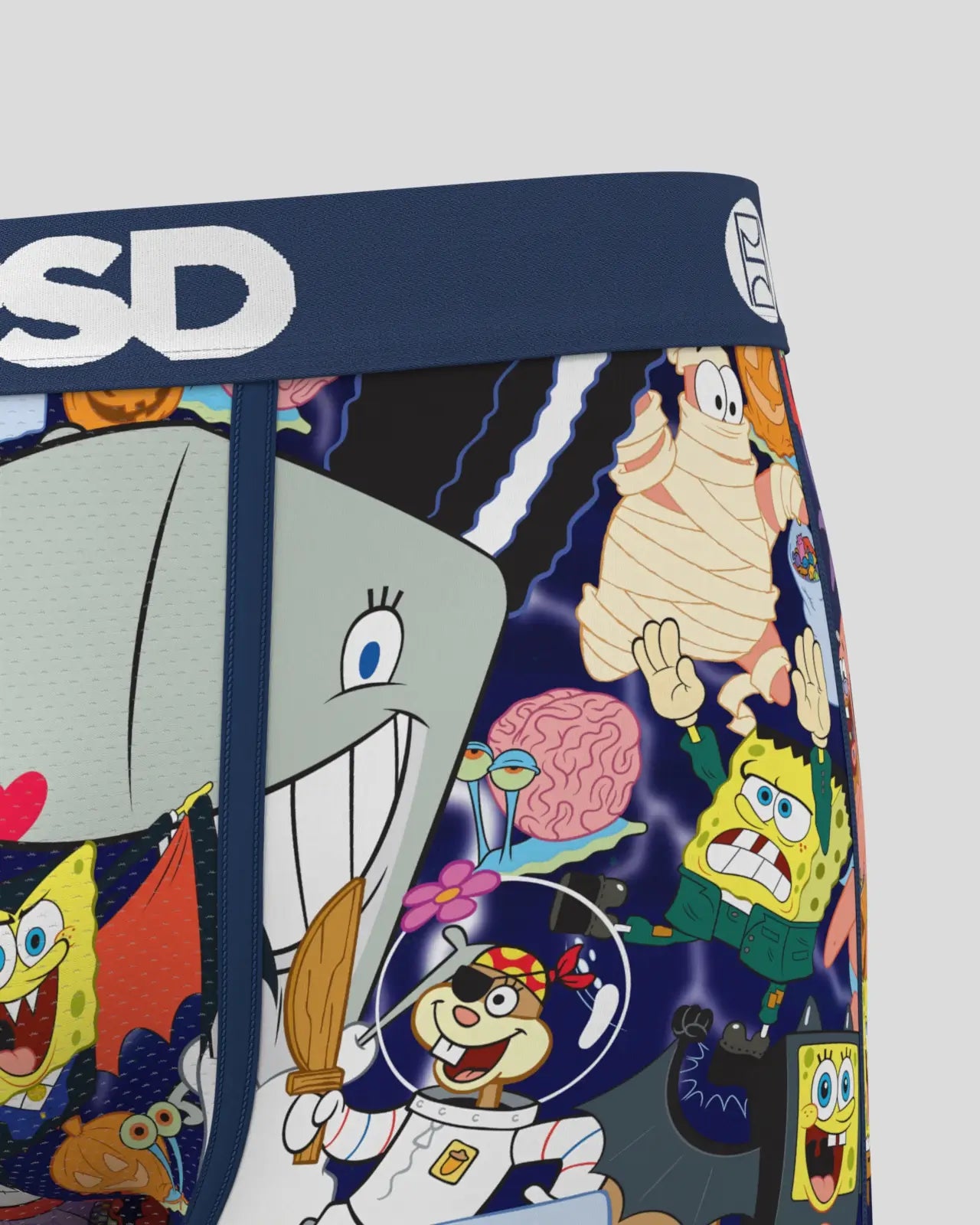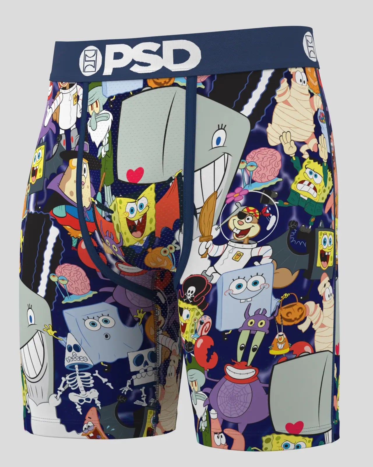 Things are getting spooky under the sea. This Halloween-ready style from SpongeBob SquarePants brings the whole crew together in full costume chaos. The SpongeBoo briefs include our ultra-comfortable Signature WaistBand, a breathable MicroMesh pouch, and four-way stretch. The PSD 7” Standard Length Briefs won't roll or ride and were built for everything, from everyday wear to your toughest workouts.