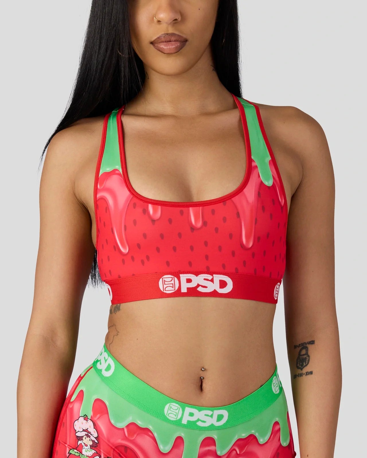 New from Strawberry Shortcake x PSD, the Strawberry Drip Sports Bra is made from a silky poly blend that’s breathable yet slightly compressive, bringing you the comfort and support you need for everything you get into.