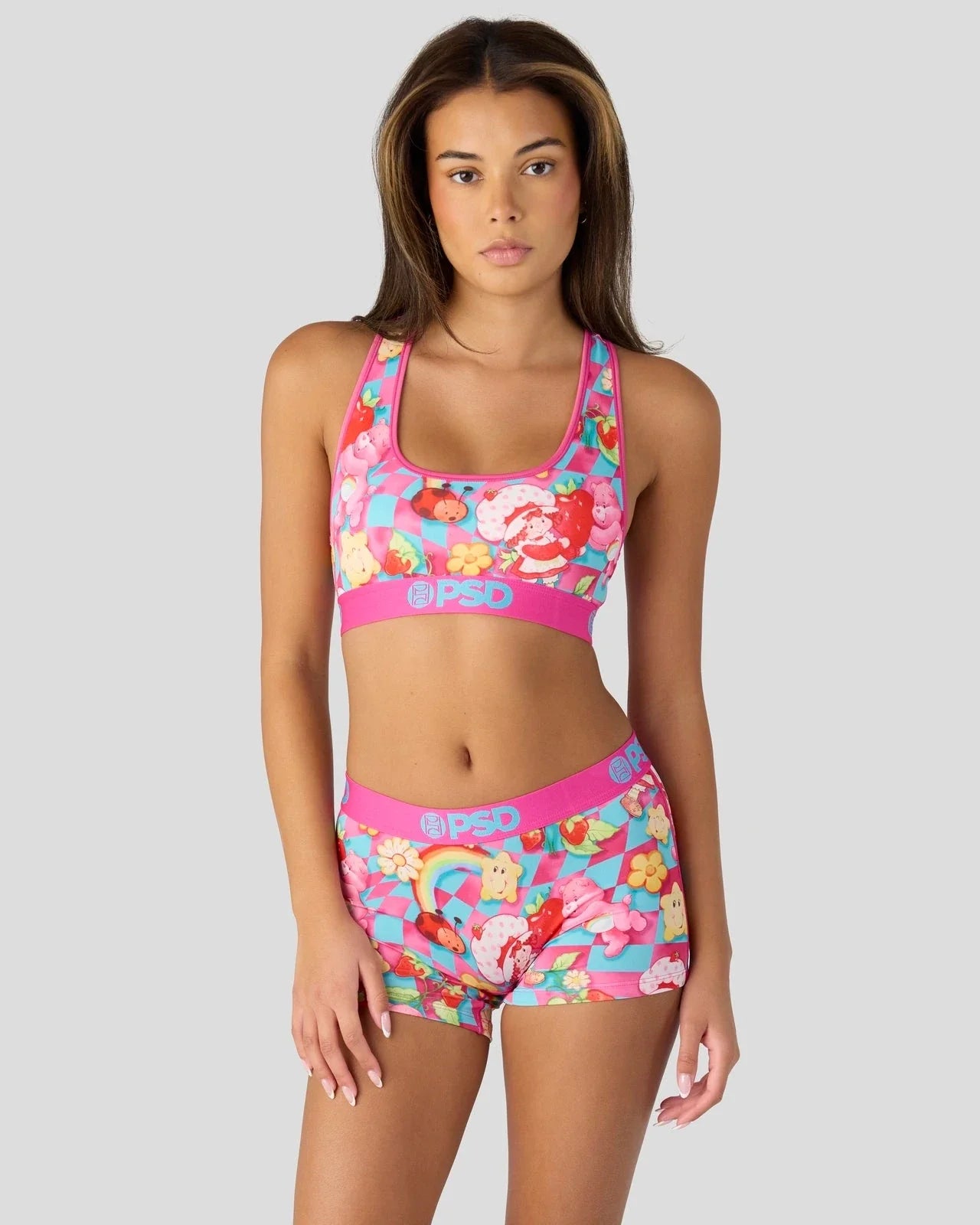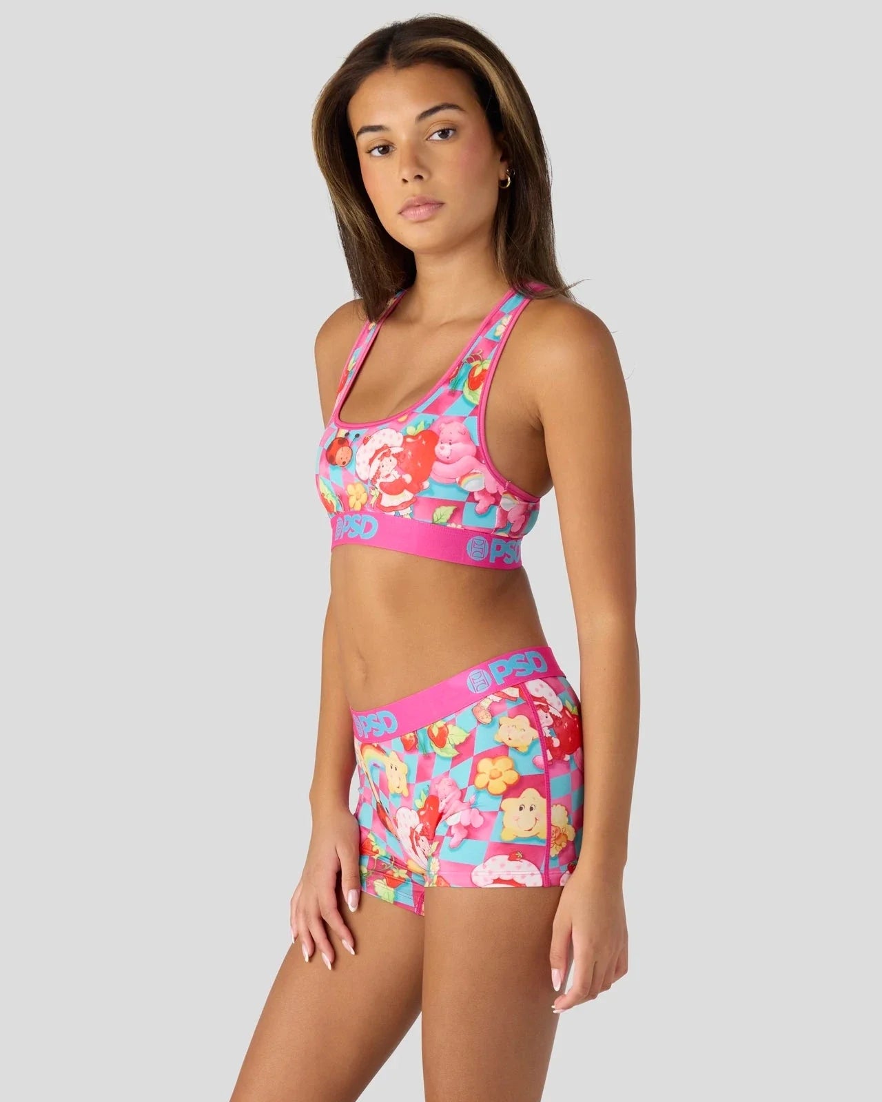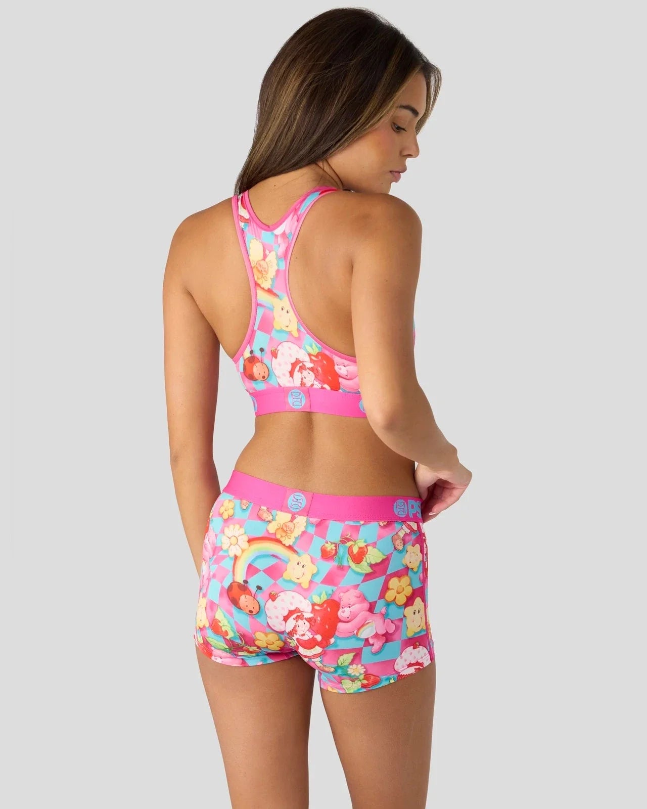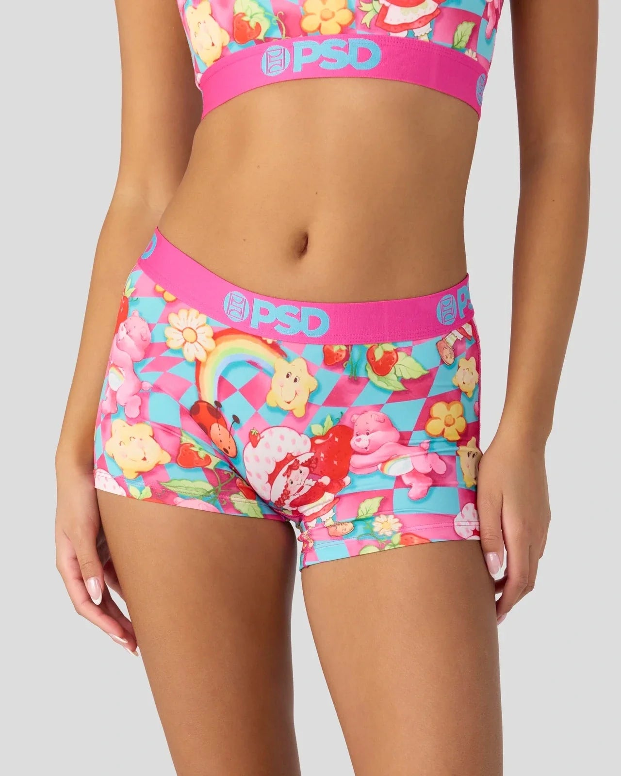 This Strawberry Shortcake x Care Bears x PSD is the super sweet crossover you've been dreaming of. The Strawberry Shortcake x Care Bears Trippin Boy Short is made from a silky poly blend with a comfortable full coverage, keep-you-in fit. The PSD boy shorts are perfect for everyday wear and working out.
