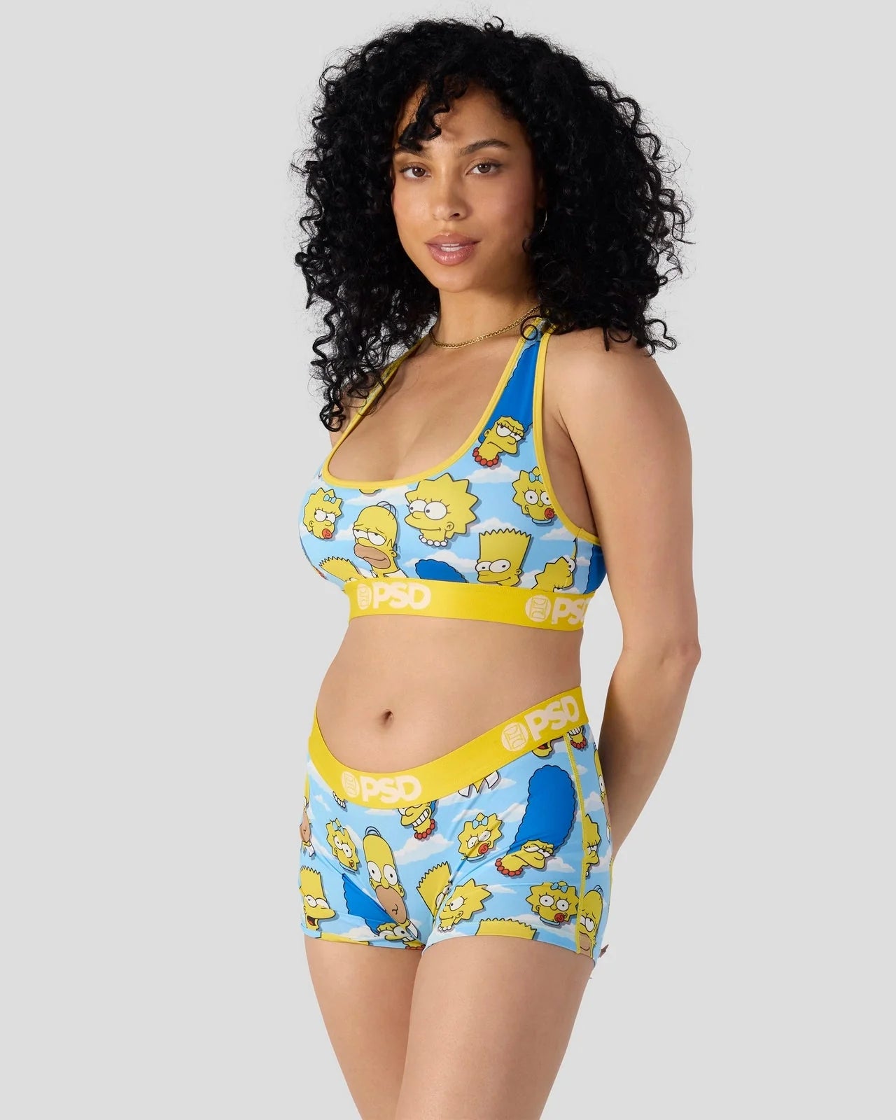 New from The Simpsons x PSD. The Simpsons Head Sports Bra is made from a silky poly blend with a comfortable full coverage, keep-you-in fit. The PSD boy shorts are perfect for everyday wear and working out.