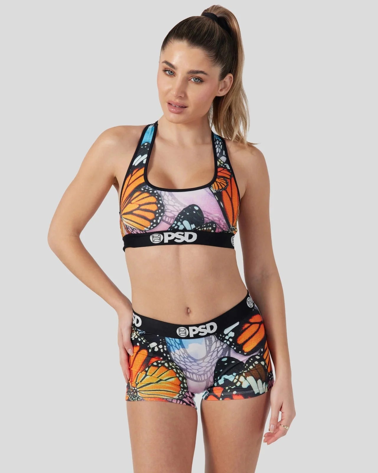 This new print features a subtle snake print behind big and beautiful fluttering butterflies. The Viper Skyes Sports Bra is made from a silky poly blend and is breathable yet slightly compressive, bringing you the comfort and support you need for everything you get into.