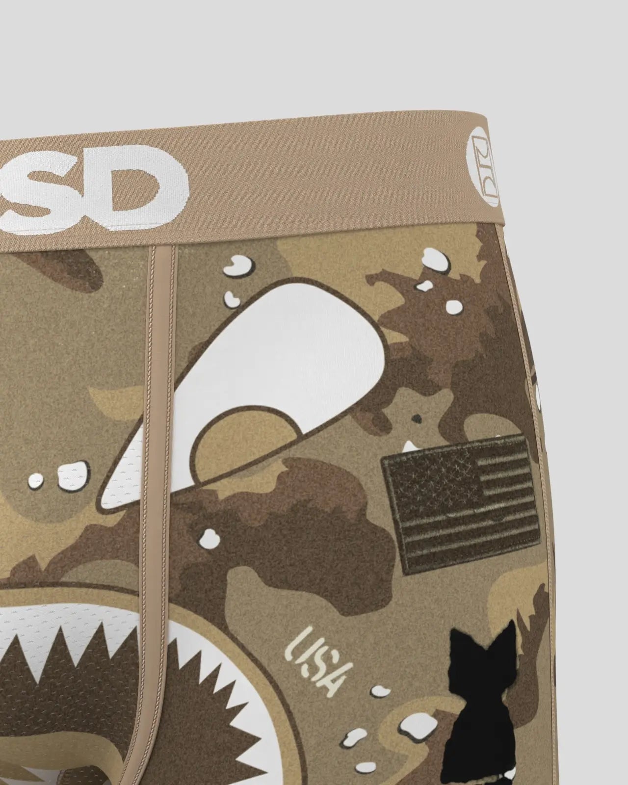 The Warface Sandstorm briefs include our ultra-comfortable Signature WaistBand, a breathable MicroMesh pouch, and four-way stretch. The PSD 7” Standard Length Briefs won't roll or ride and were built for everything, from everyday wear to your toughest workouts.