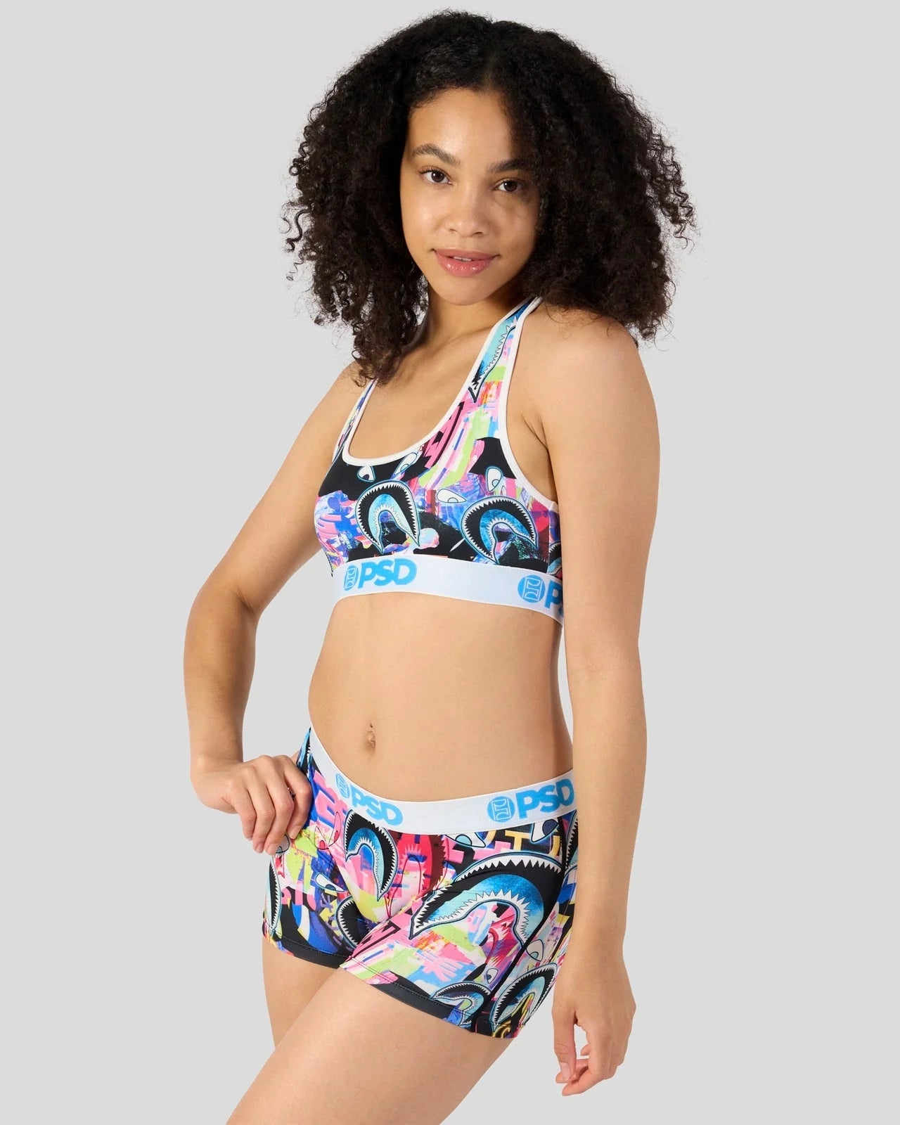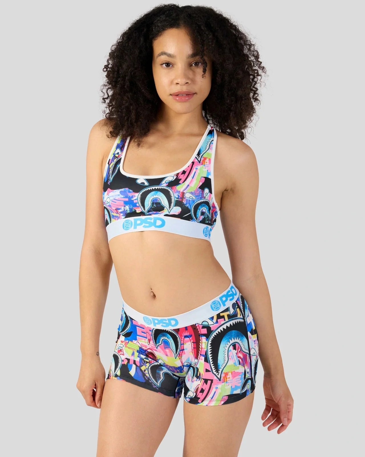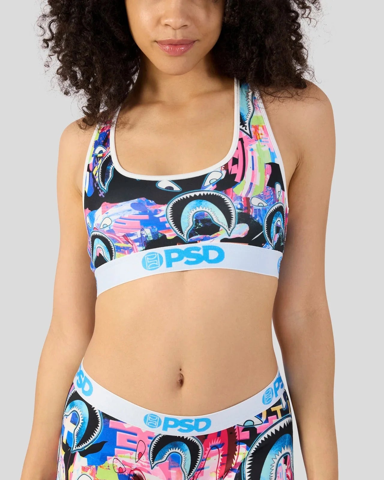 The Warface Shark Glitch Sports Bra is made from a silky poly blend and is breathable yet slightly compressive, bringing you the comfort and support you need for everything you get into.