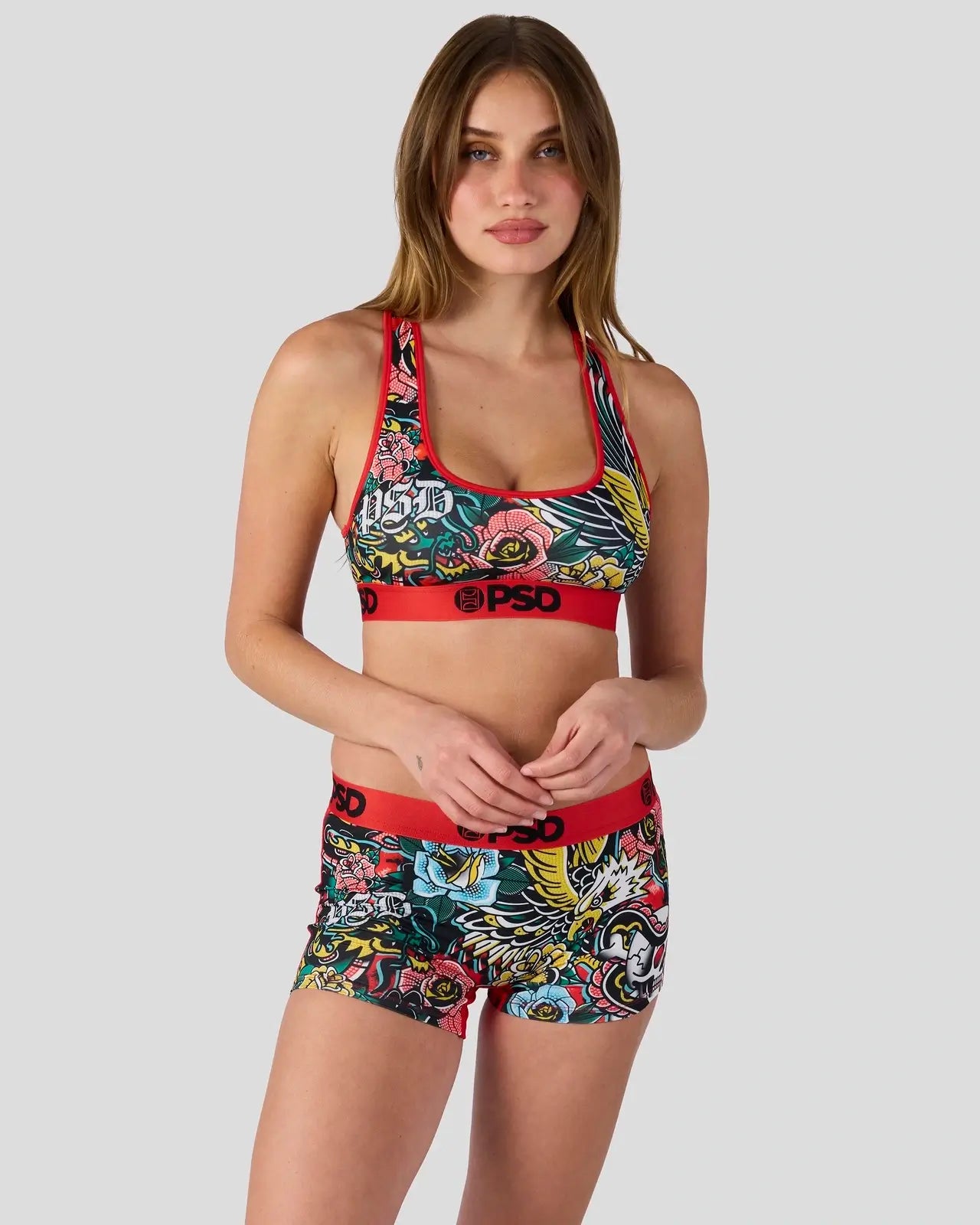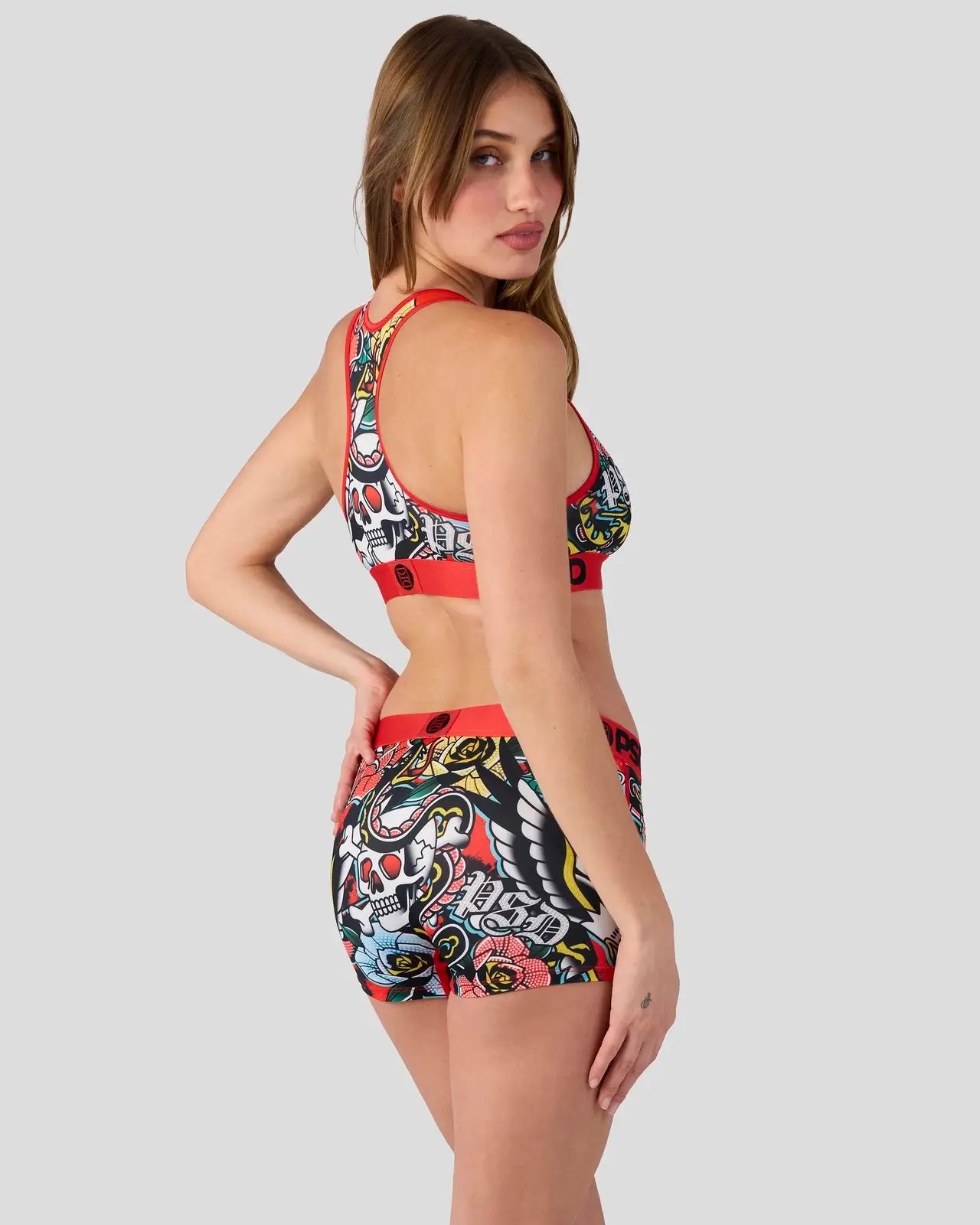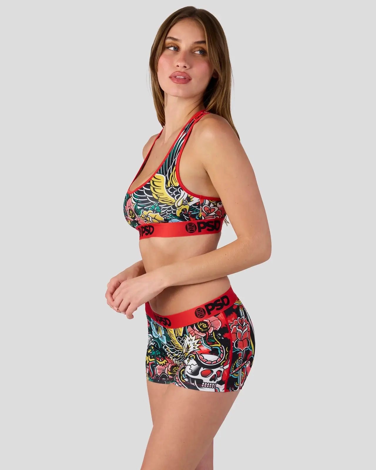 This fierce, tattoo-inspired look is channeling early-2000s edge. The Winged Spirit Boy Short is made from a silky poly blend with a comfortable full-coverage, keep-you-in fit. The PSD boy shorts are perfect for everyday wear and working out.